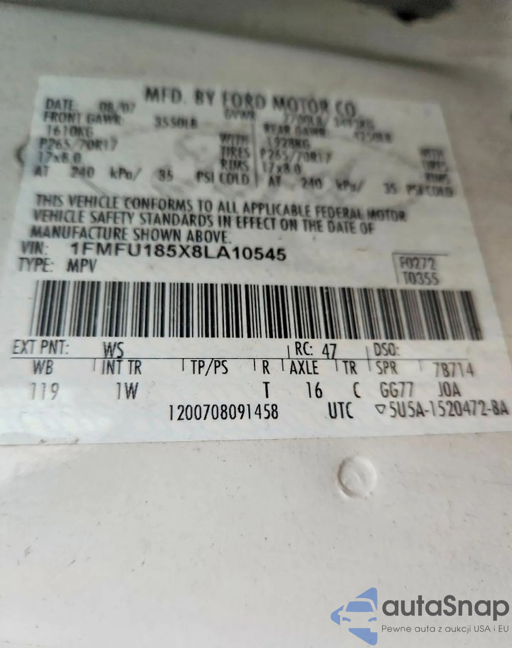 VIN: 1FMFU185X8LA10545