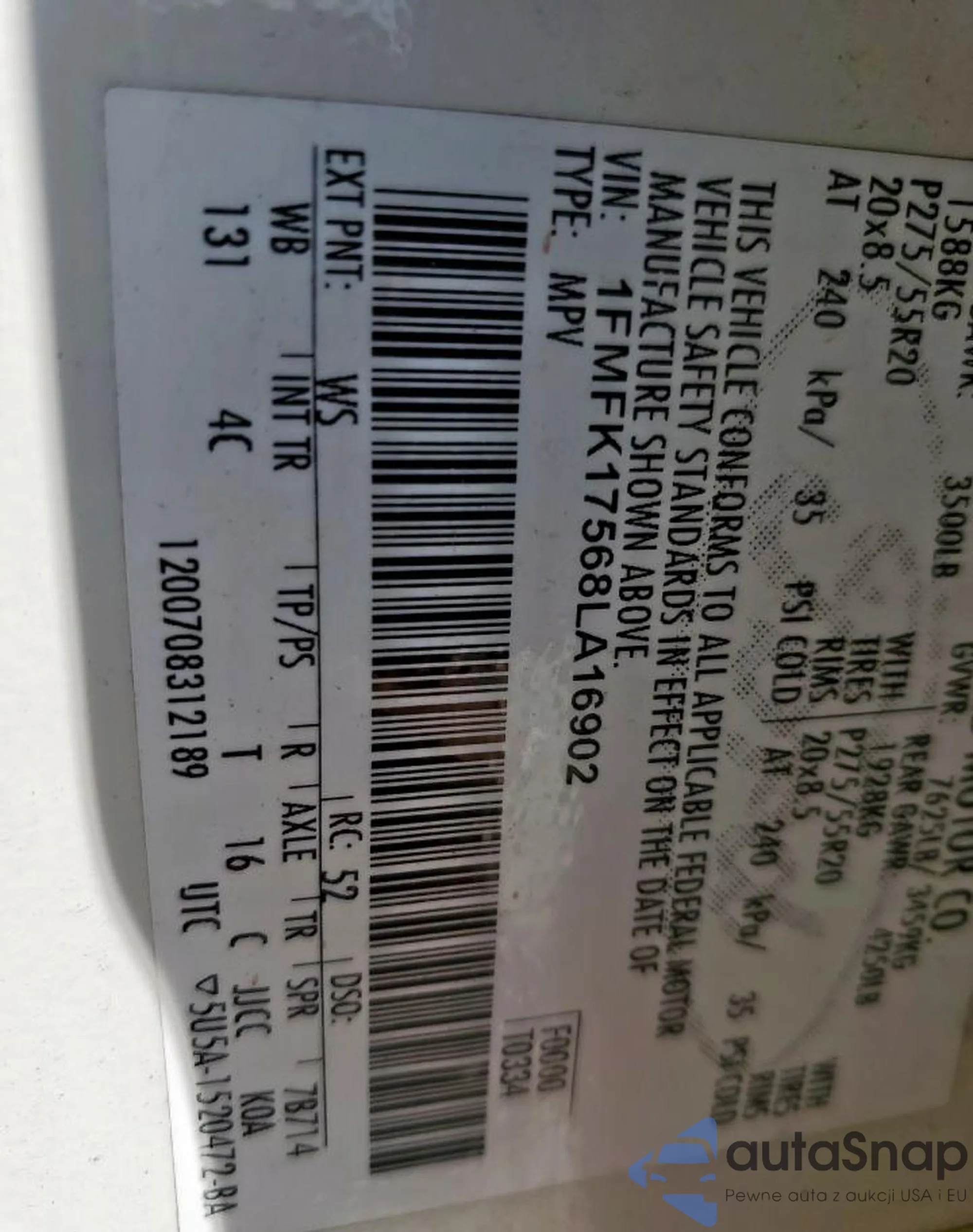 VIN: 1FMFK17568LA16902