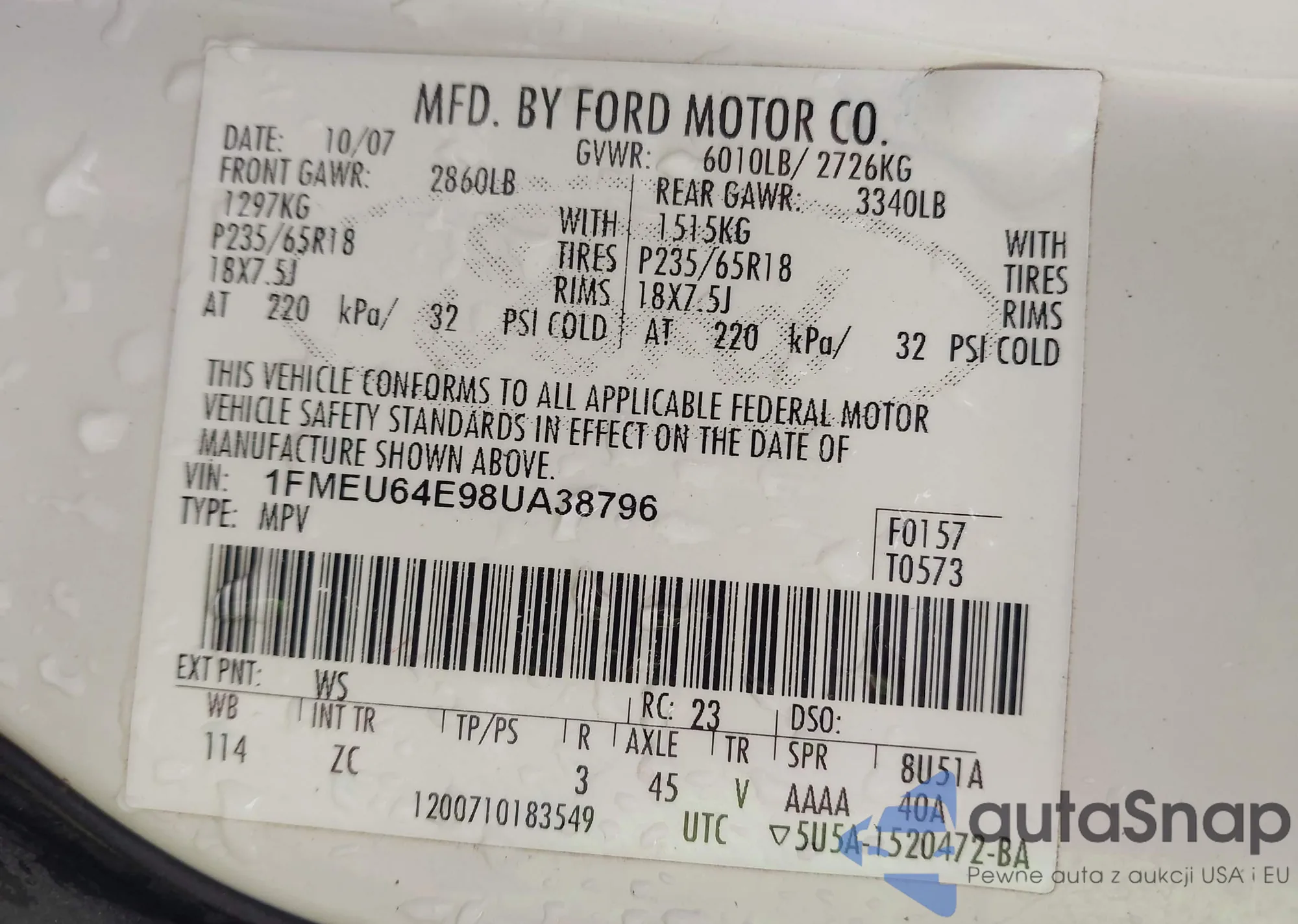 VIN: 1FMEU64E98UA38796