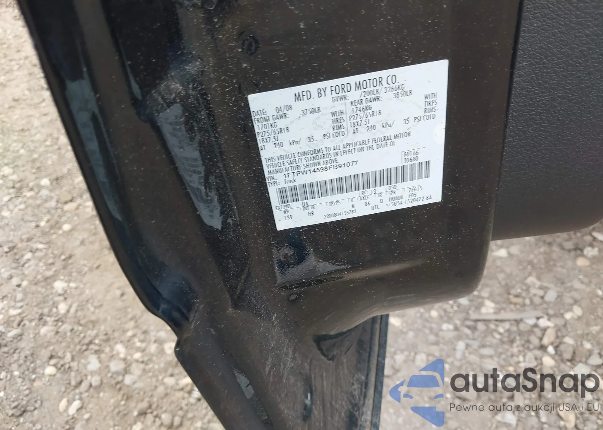 VIN: 1FTPW14598FB91077