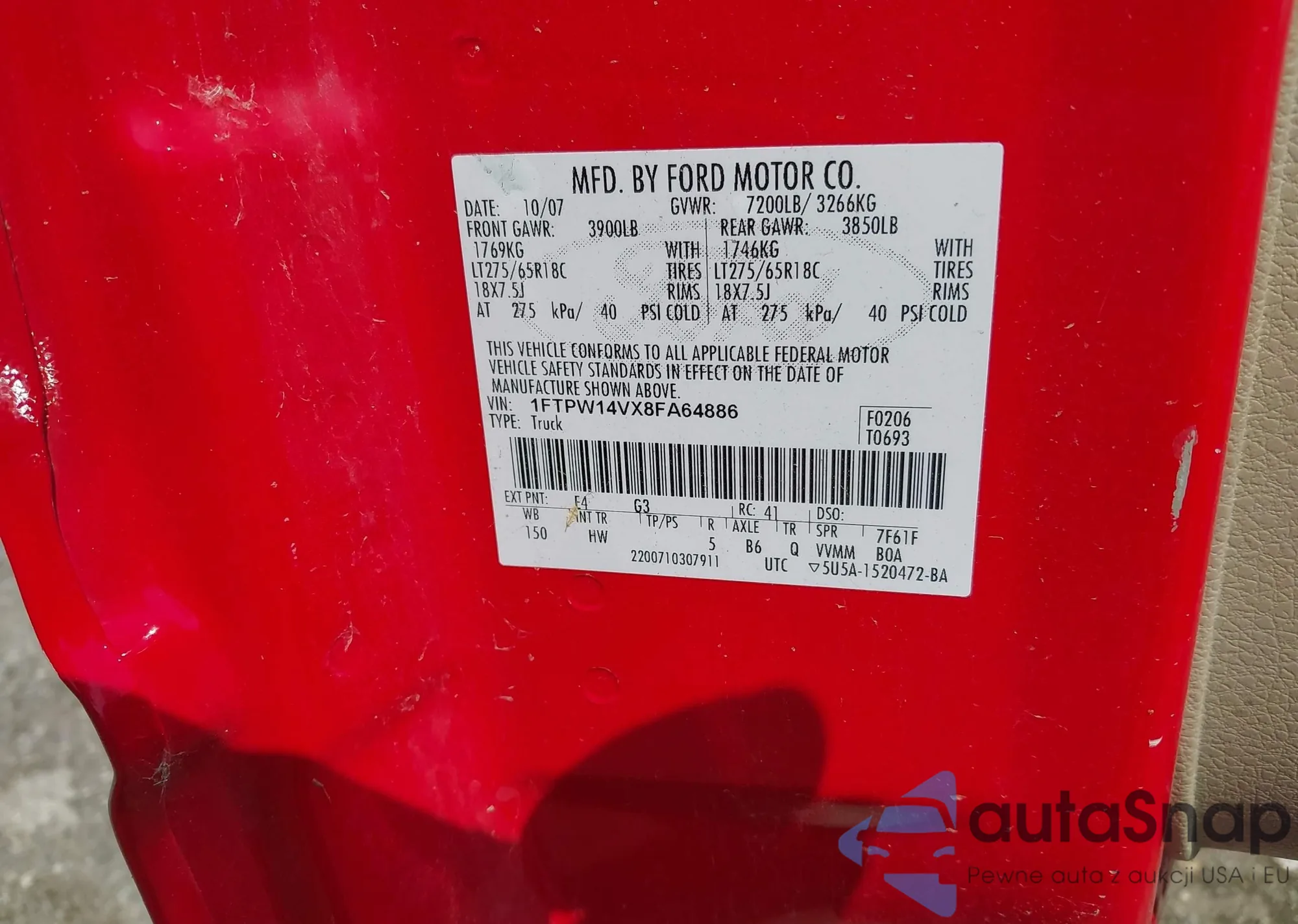 VIN: 1FTPW14VX8FA64886