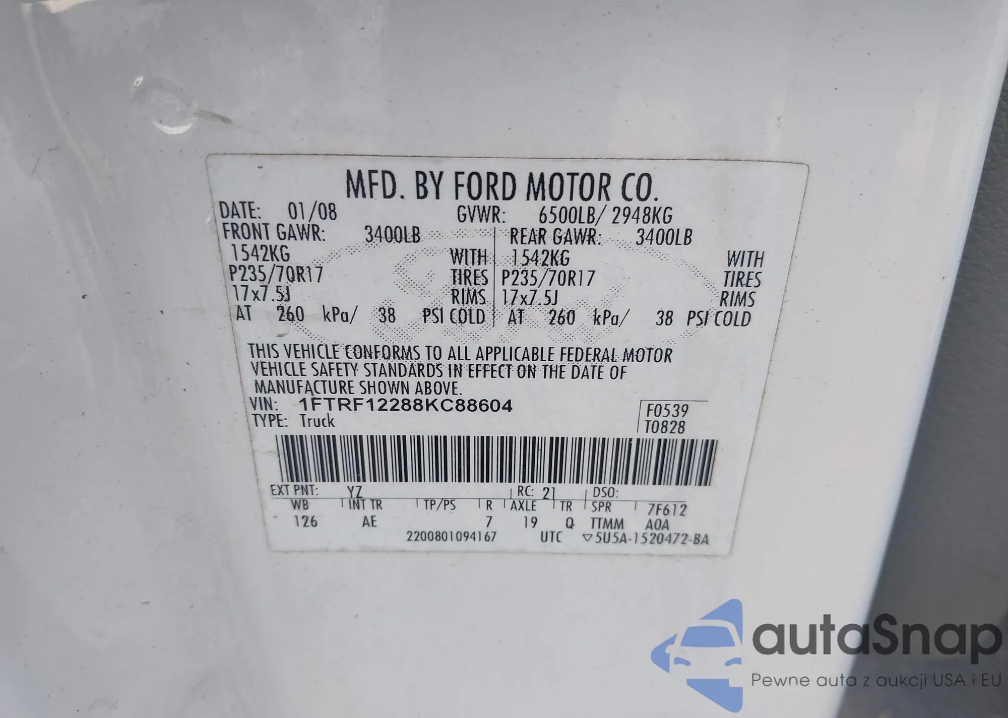 VIN: 1FTRF12288KC88604