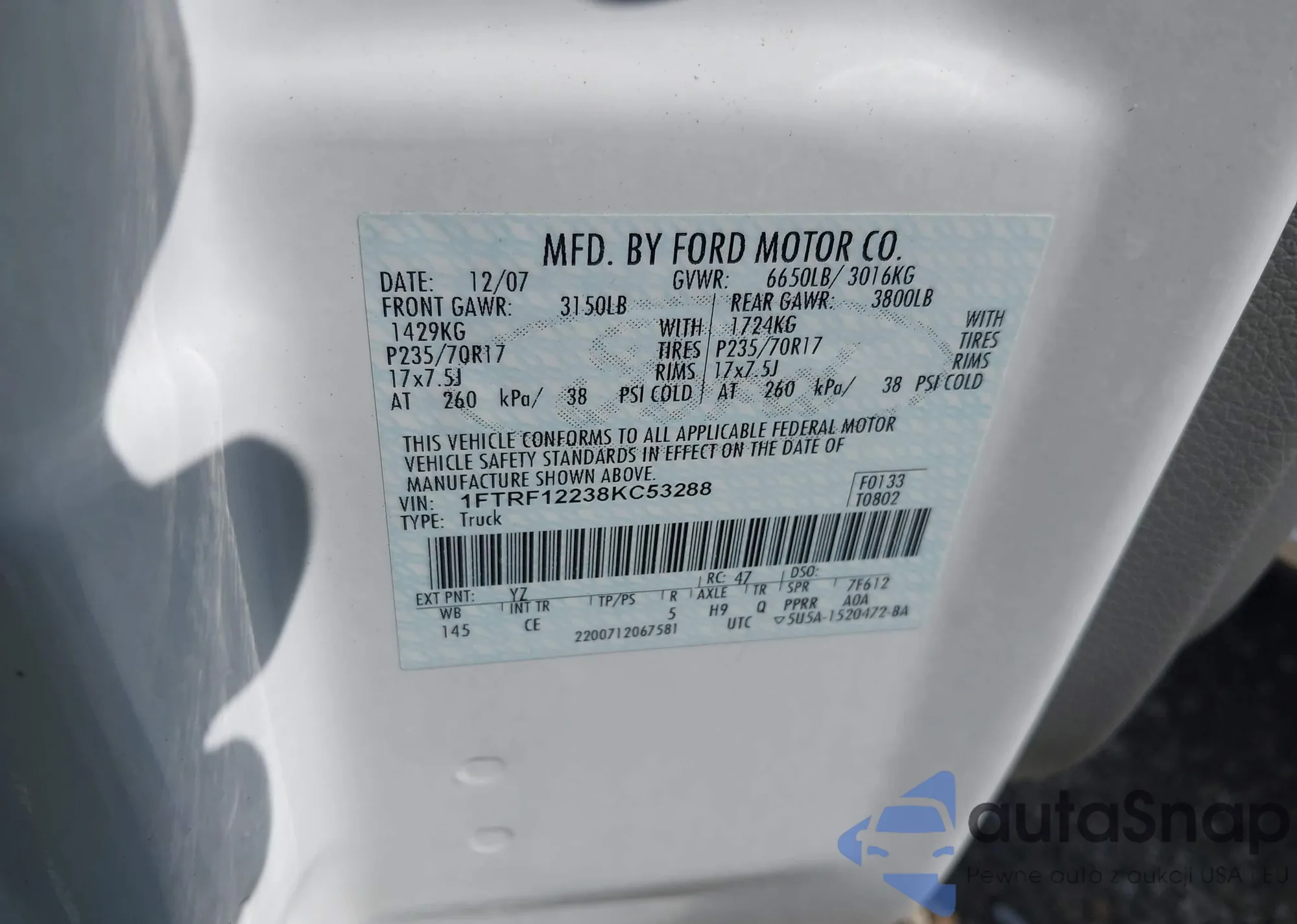 VIN: 1FTRF12238KC53288