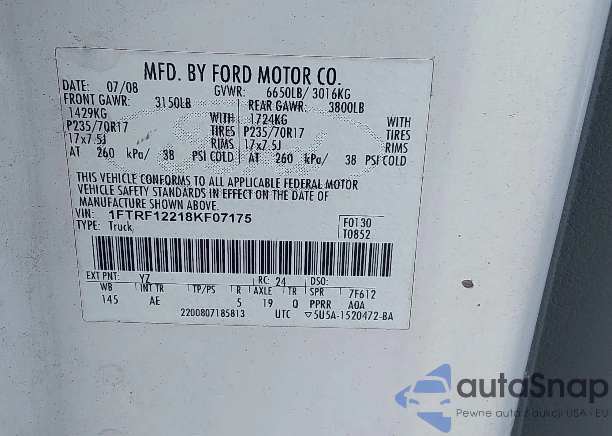 VIN: 1FTRF12218KF07175