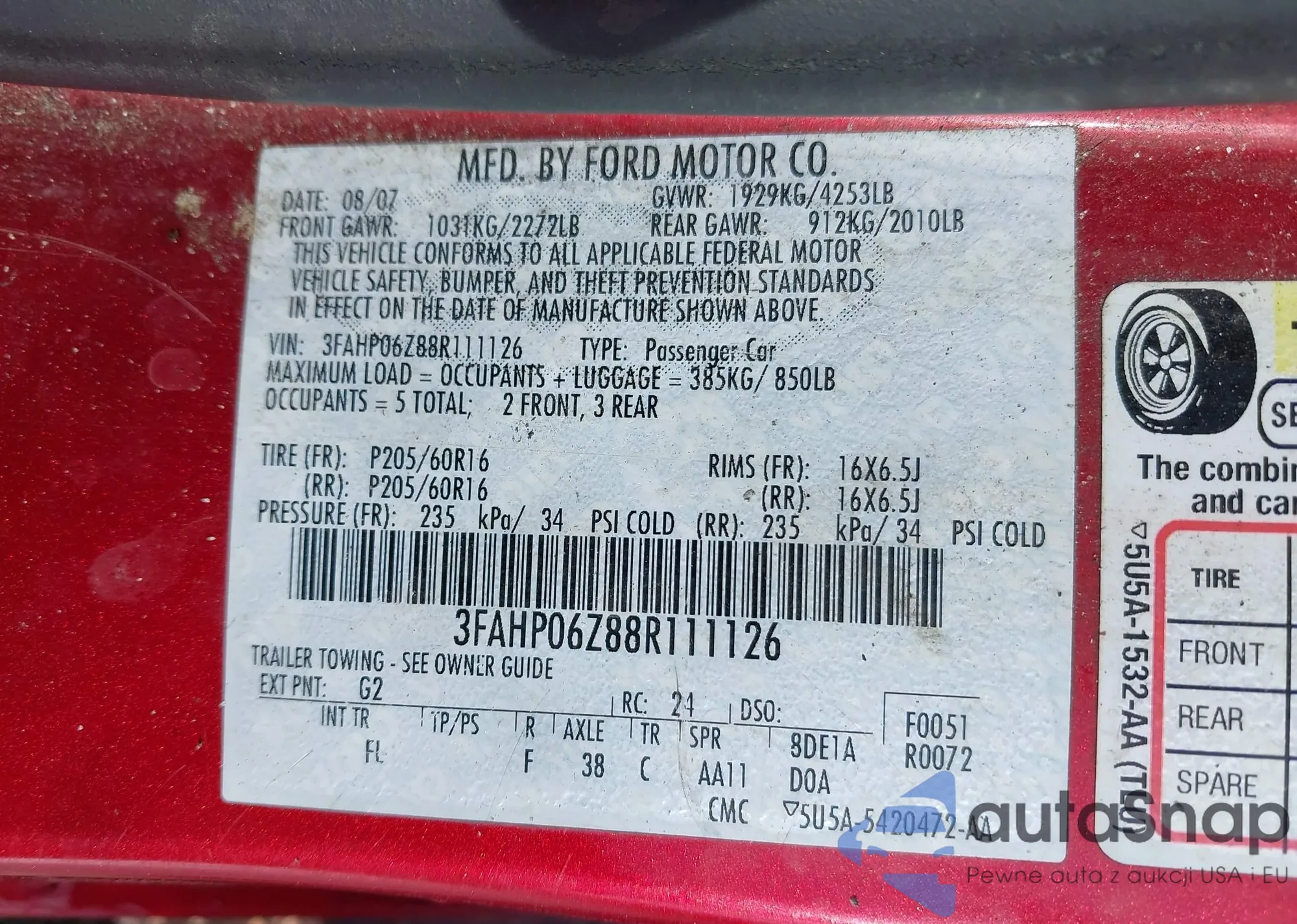 VIN: 3FAHP06Z88R111126