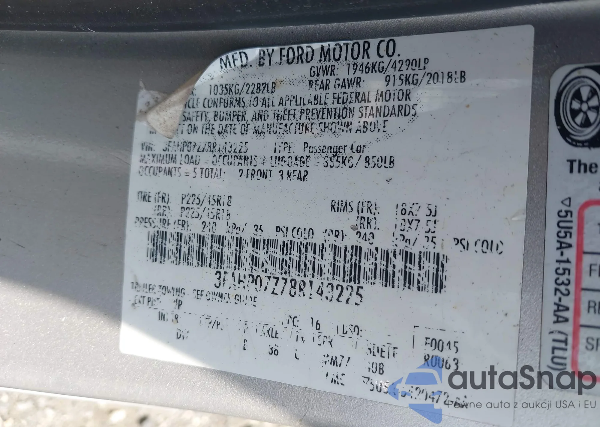Автомобиль Ford Fusion 2008 (VIN 3FAHP07Z78R143225) ранее не участвовал в торгах. Документы чистые, пробег соответствует или ниже среднего по рынку. Продаётся страховой компанией — рекомендуем покупку. Доставка в порт займет около 6–8 недель.