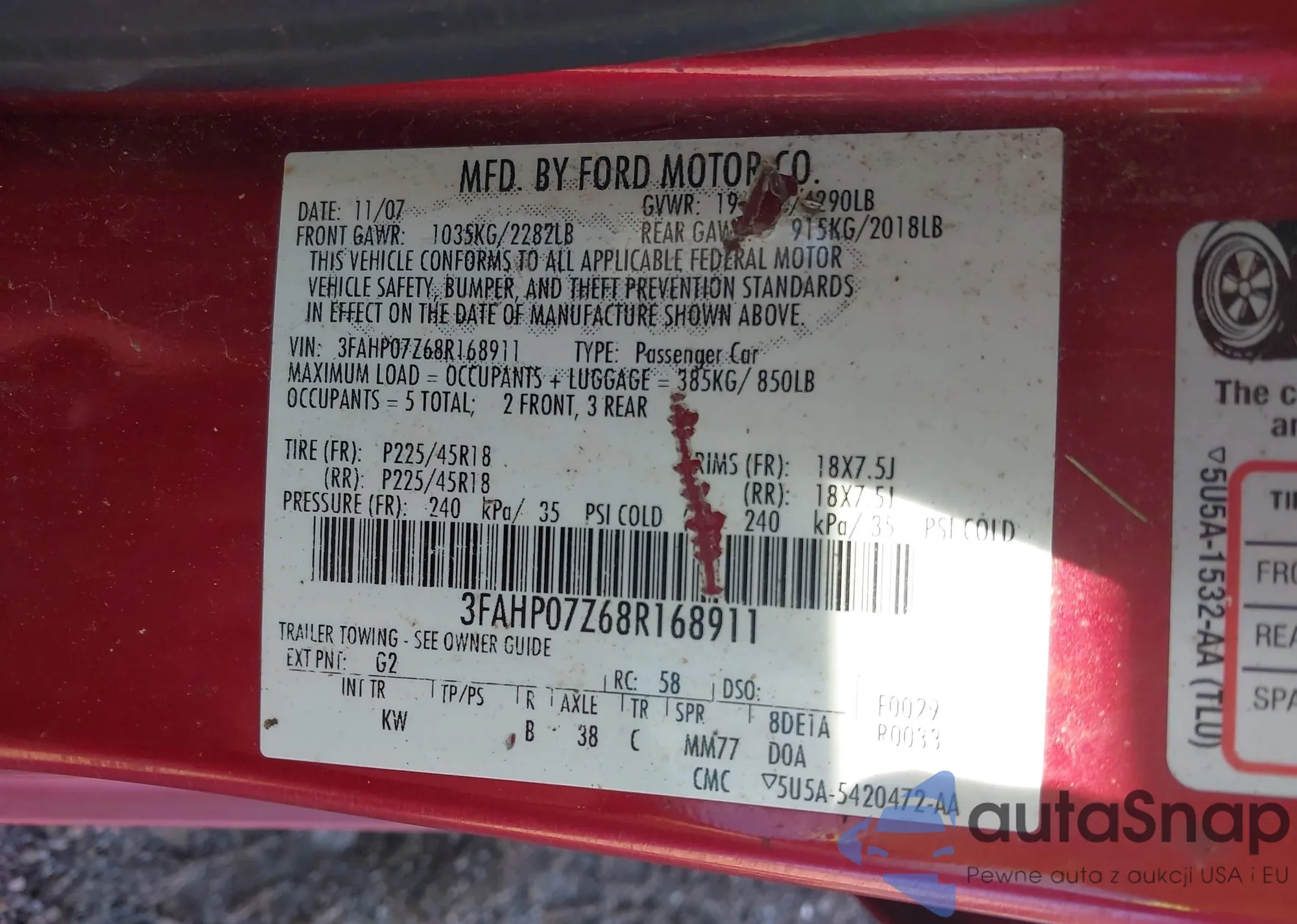 VIN: 3FAHP07Z68R168911