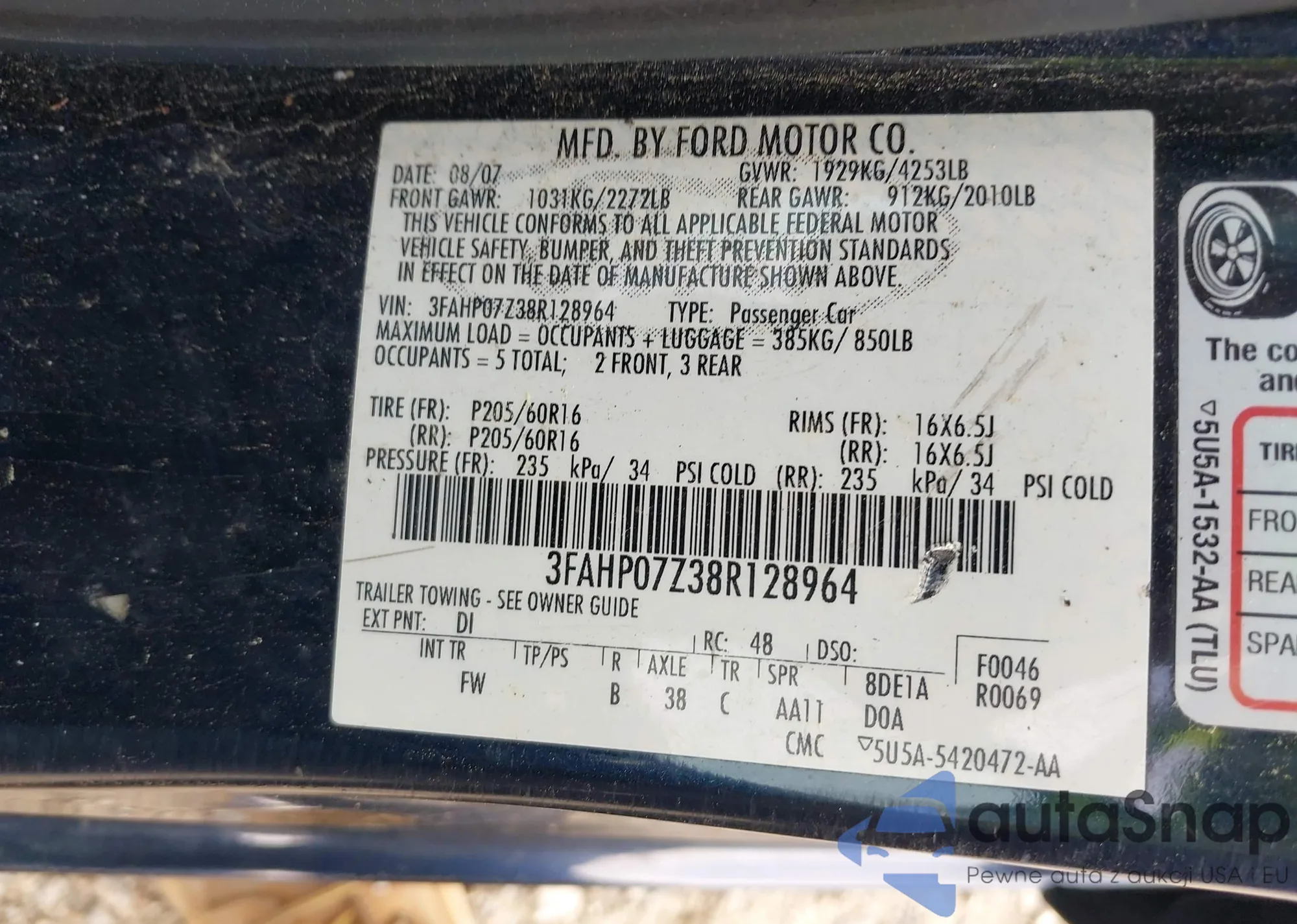 VIN: 3FAHP07Z38R128964