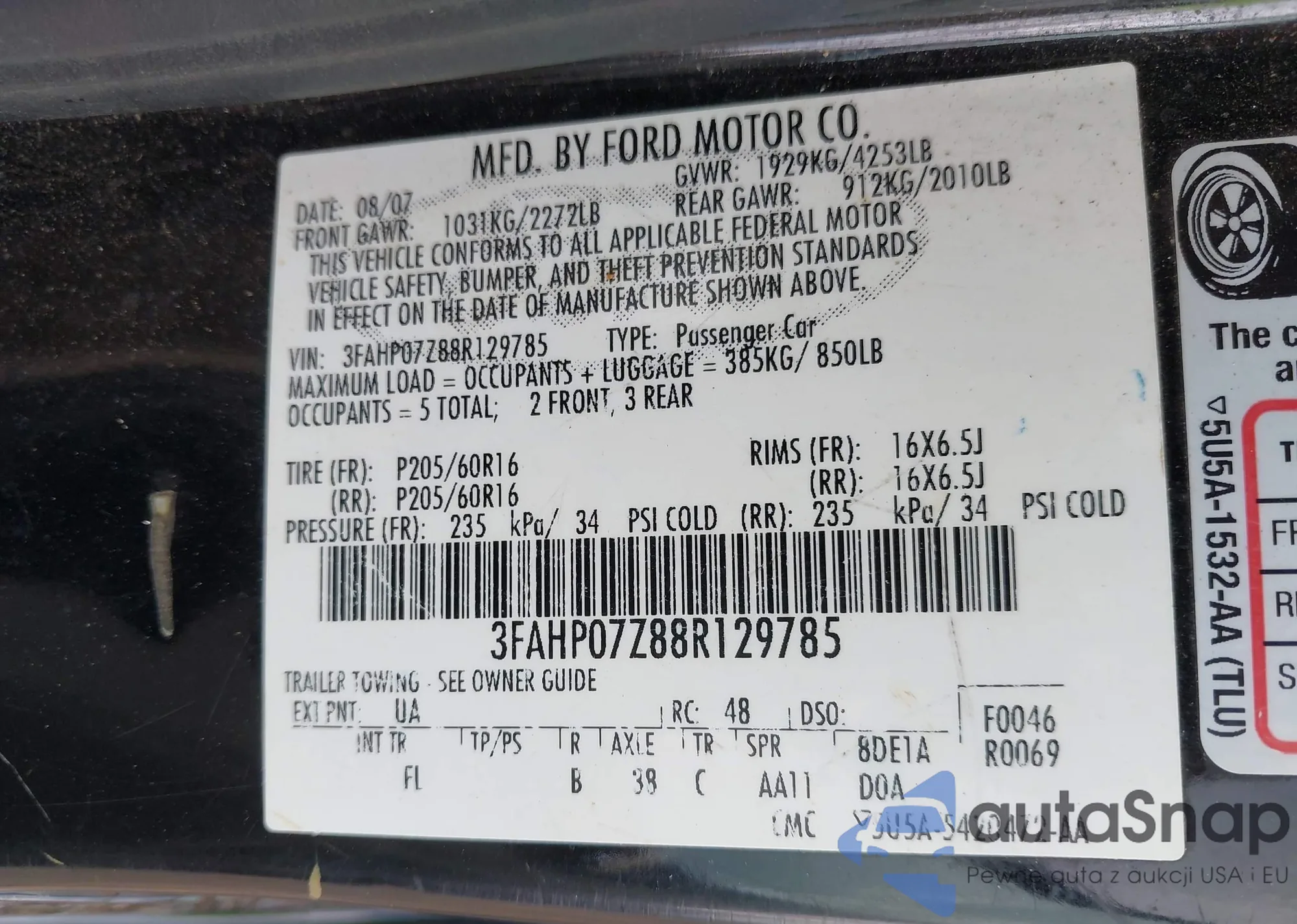 • VIN: 3FAHP07Z88R129785