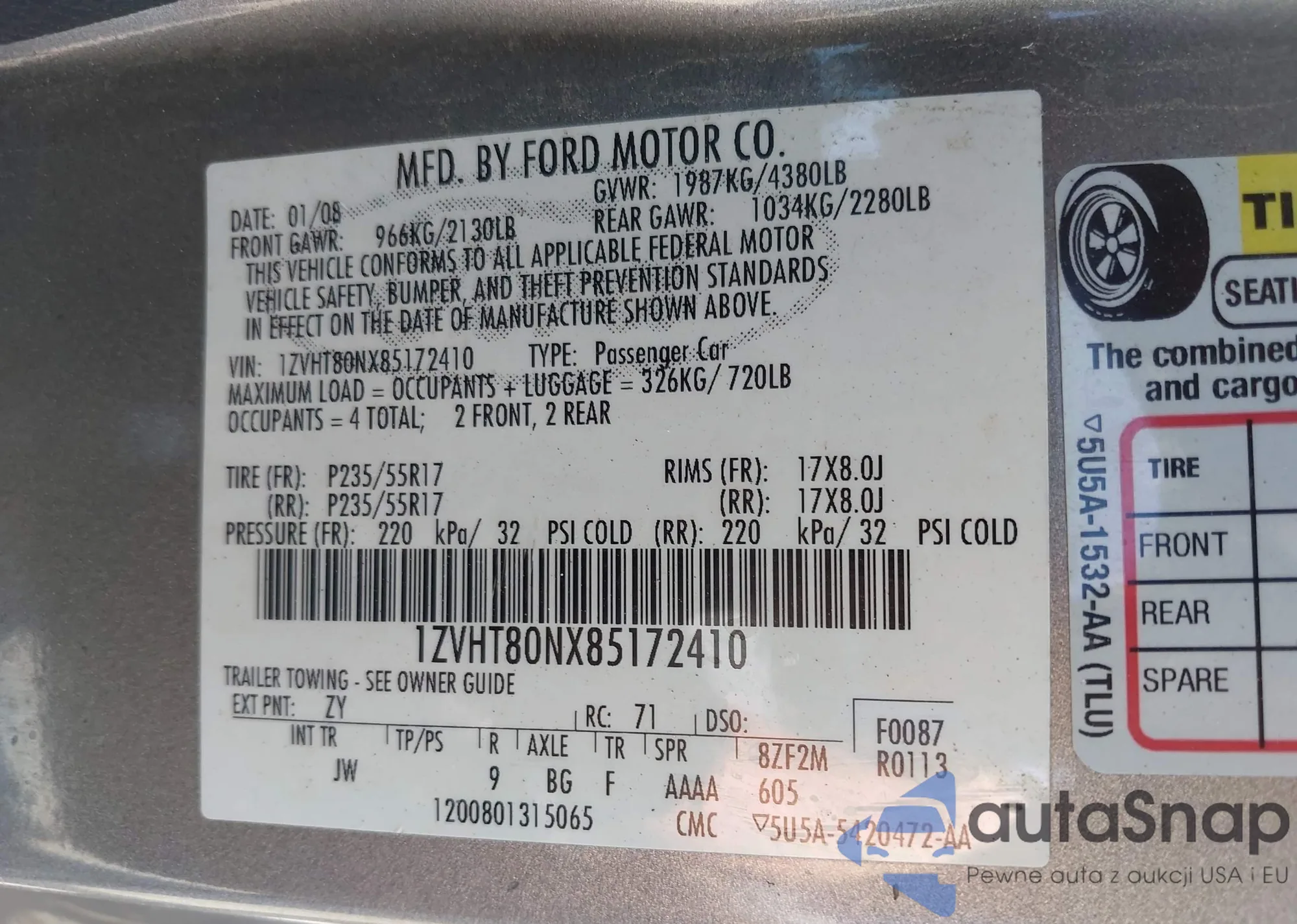 VIN: 1ZVHT80NX85172410