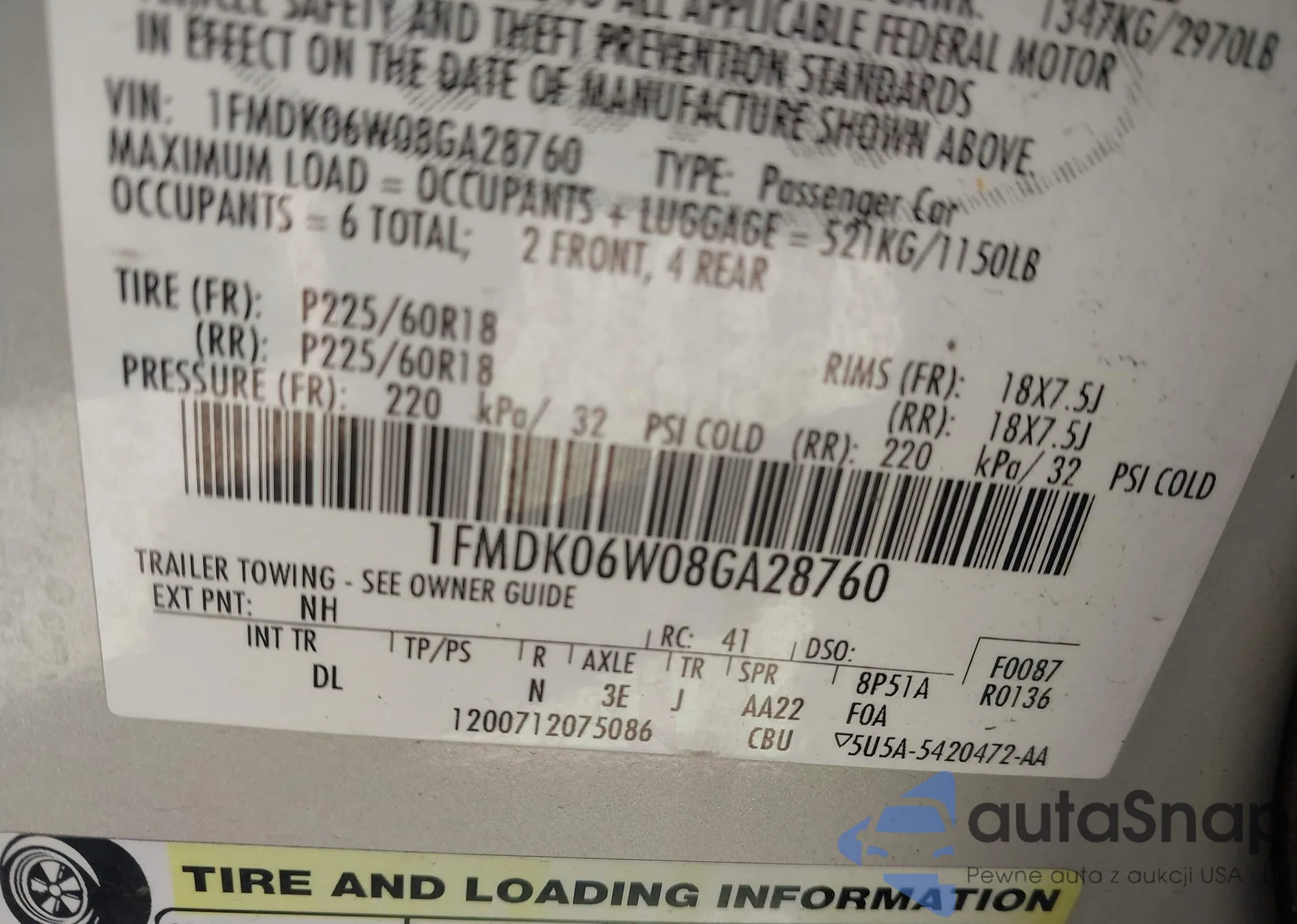 VIN: 1FMDK06W08GA28760