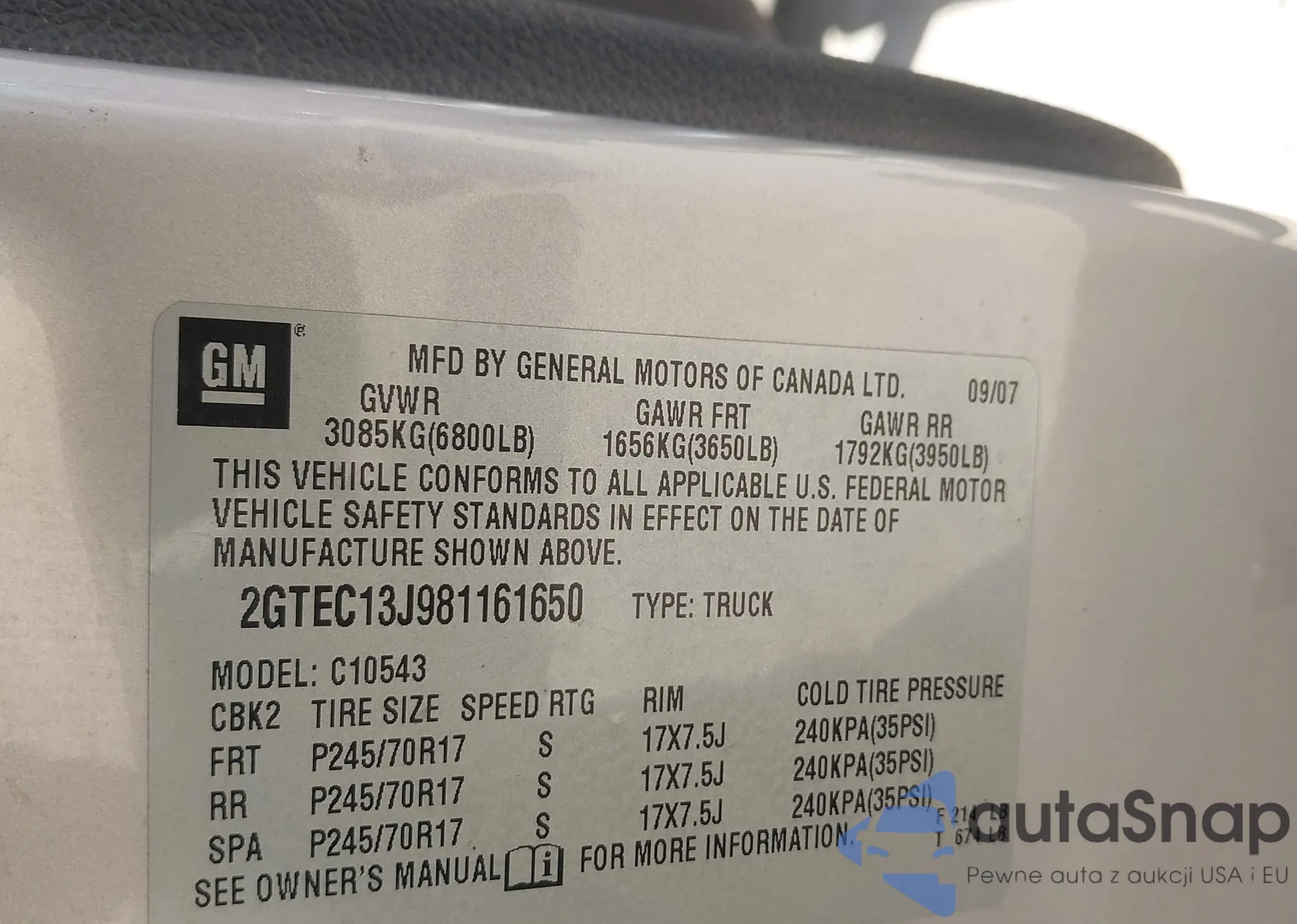 • VIN: 2GTEC13J981161650