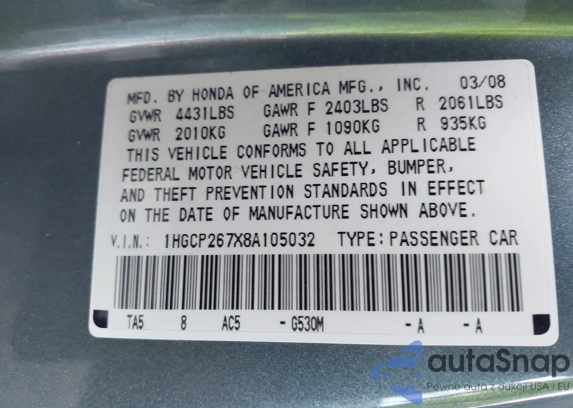 Автомобиль Honda Accord 2008 (VIN 1HGCP267X8A105032) ранее не участвовал в торгах. Документы чистые, пробег соответствует или ниже среднего по рынку. Продаётся страховой компанией — рекомендуем покупку. Доставка в порт займет около 6–8 недель.
