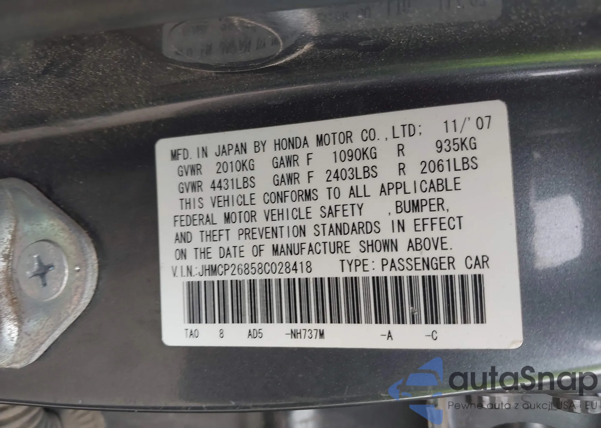 VIN: JHMCP26858C028418