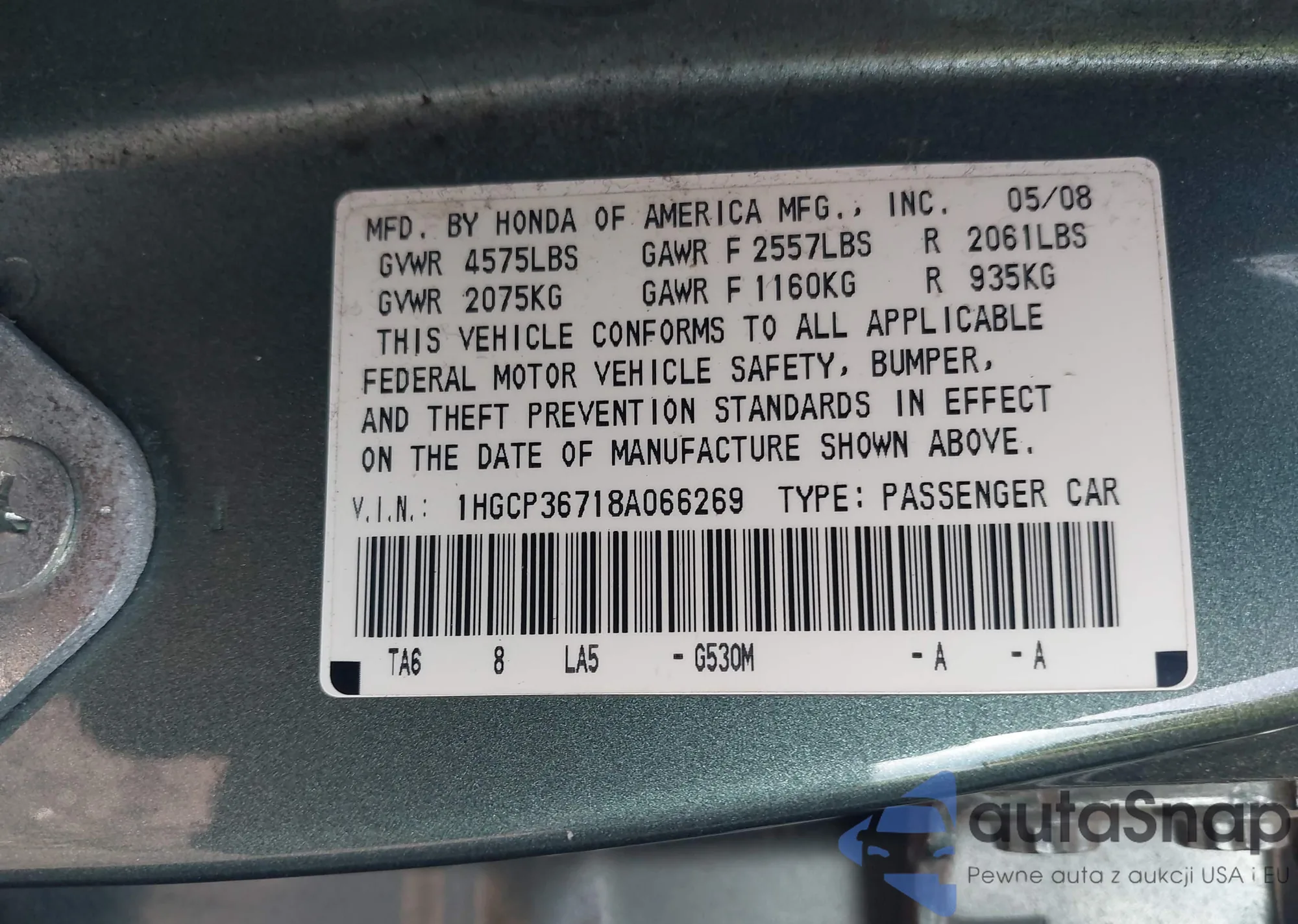 VIN: 1HGCP36718A066269