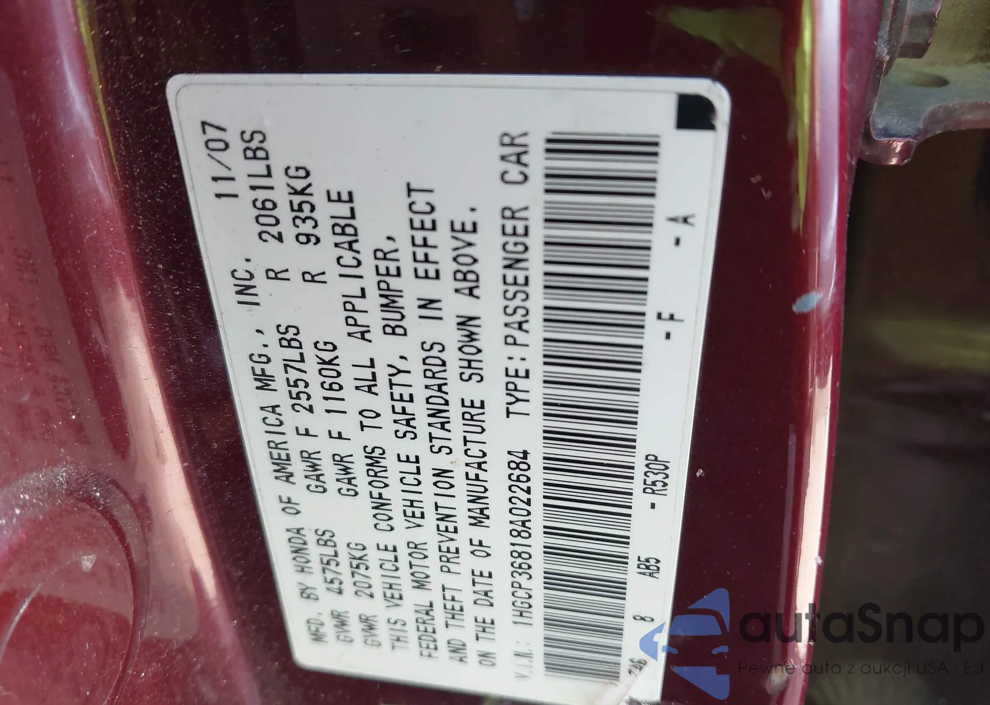 VIN: 1HGCP36818A022684