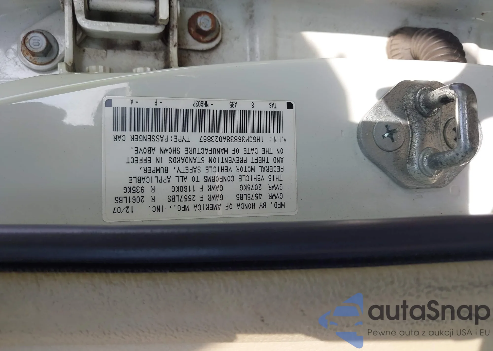 VIN: 1HGCP36838A023867