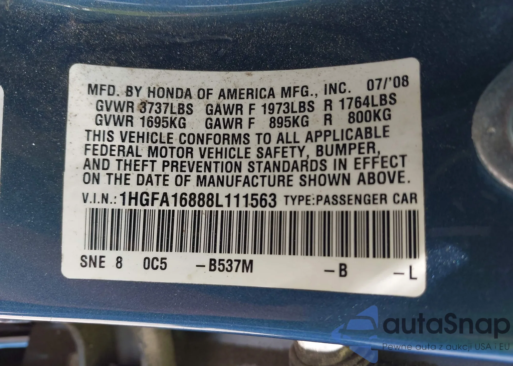 VIN: 1HGFA16888L111563