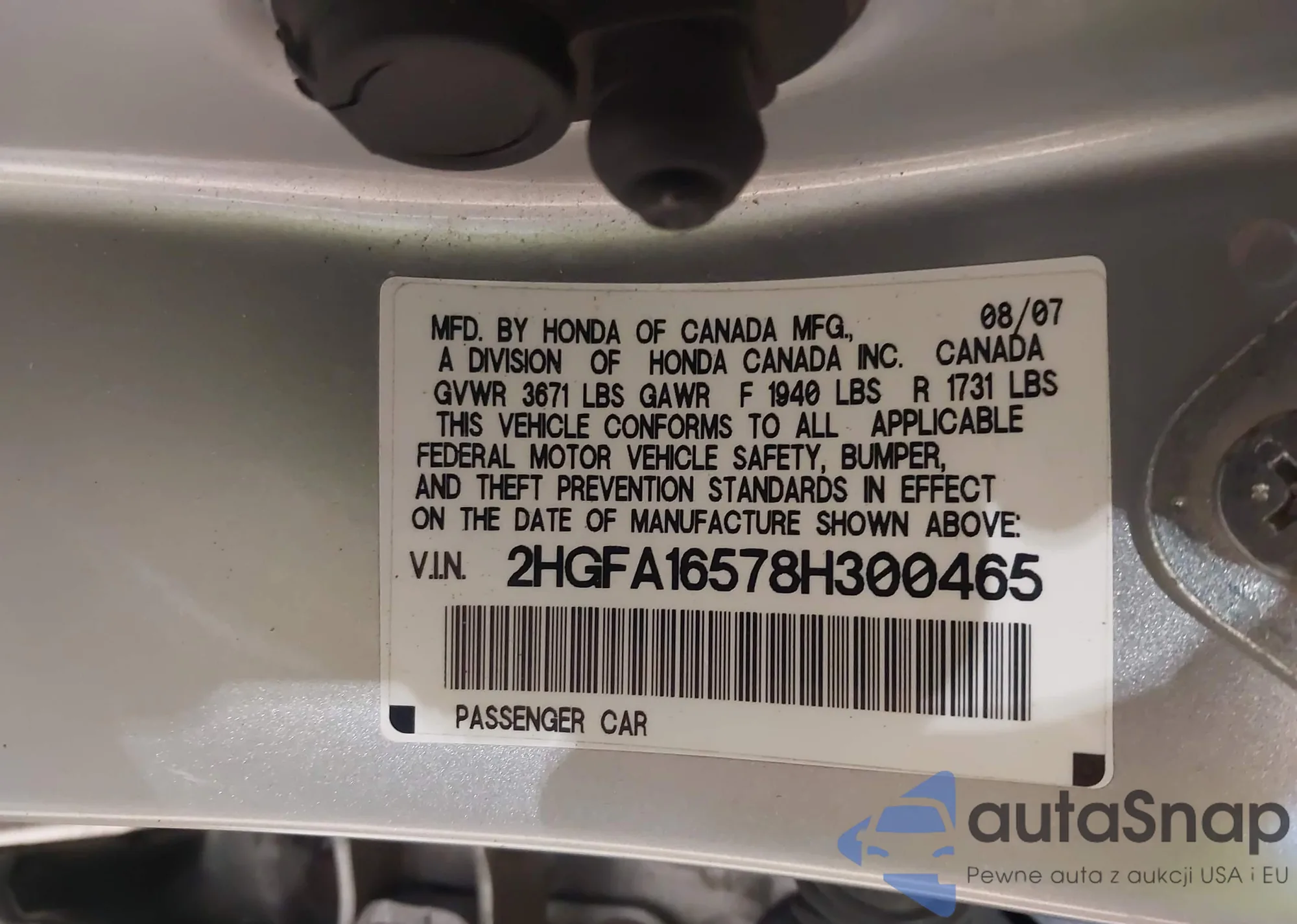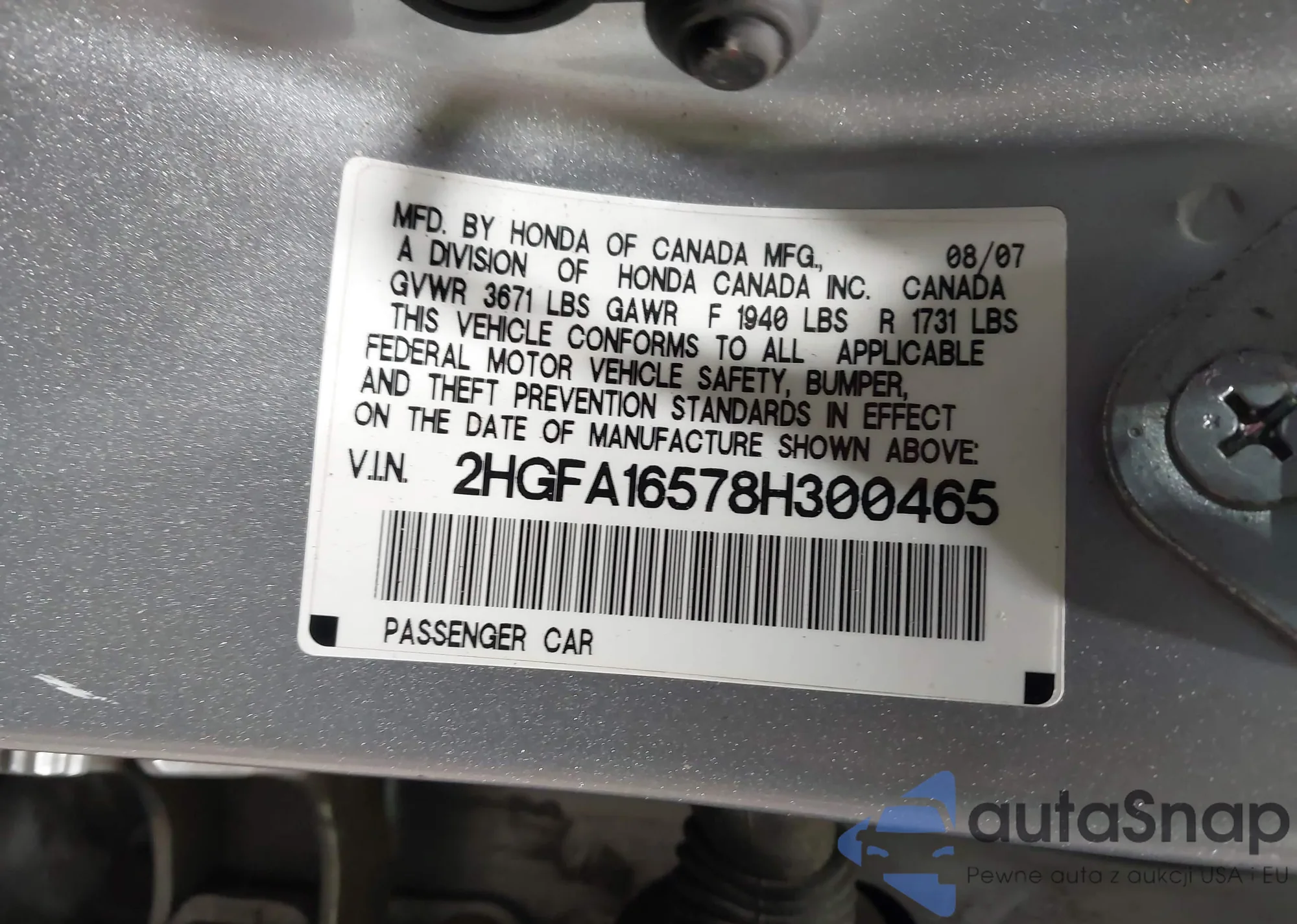 VIN: 2HGFA16578H300465