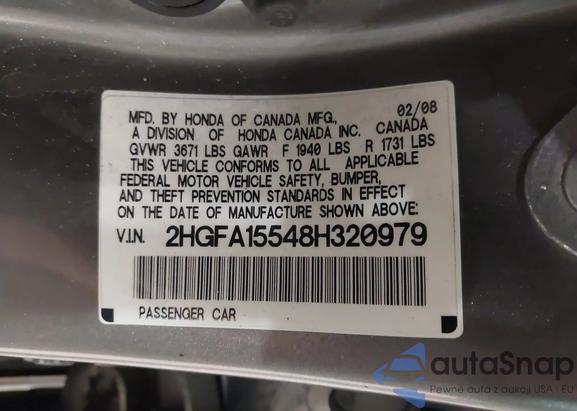 VIN: 2HGFA15548H320979