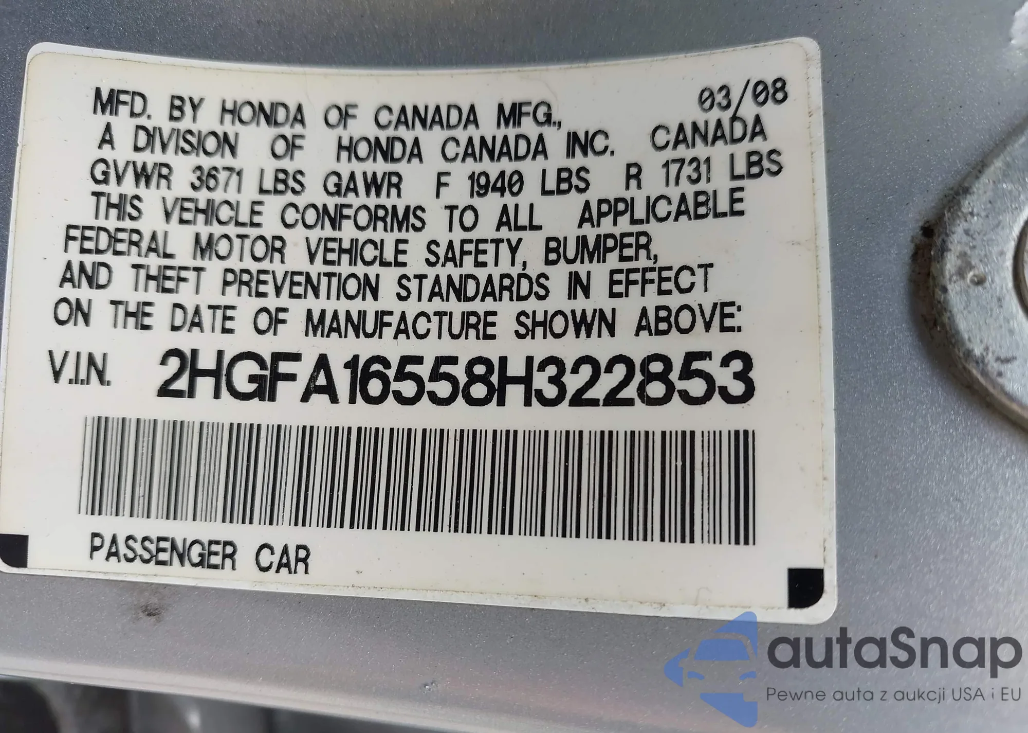 VIN: 2HGFA16558H322853