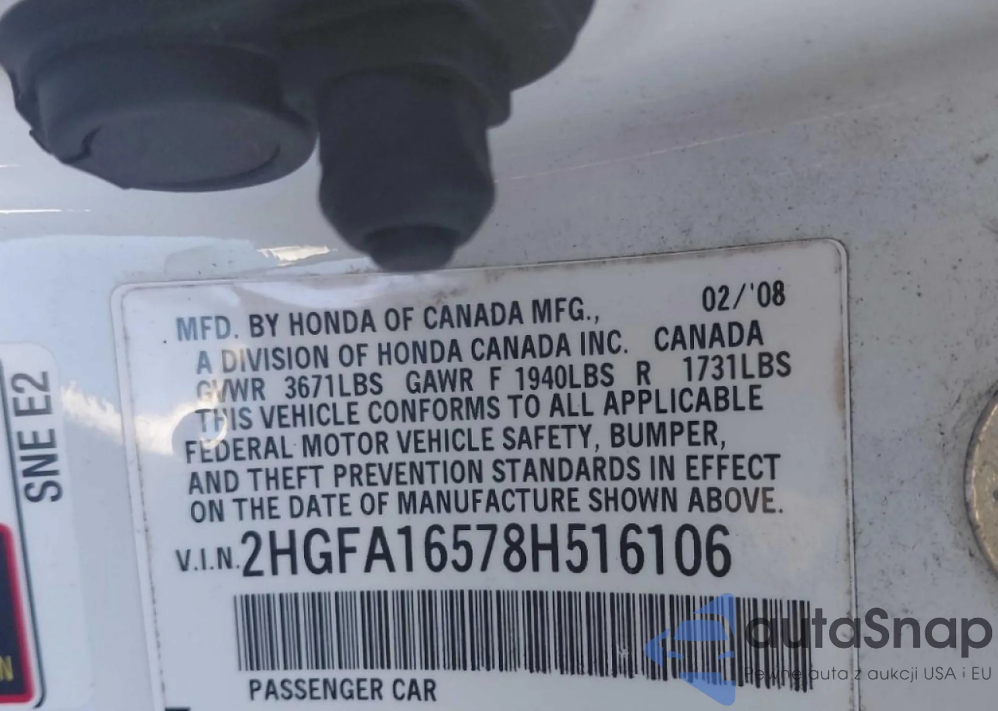 VIN: 2HGFA16578H156106