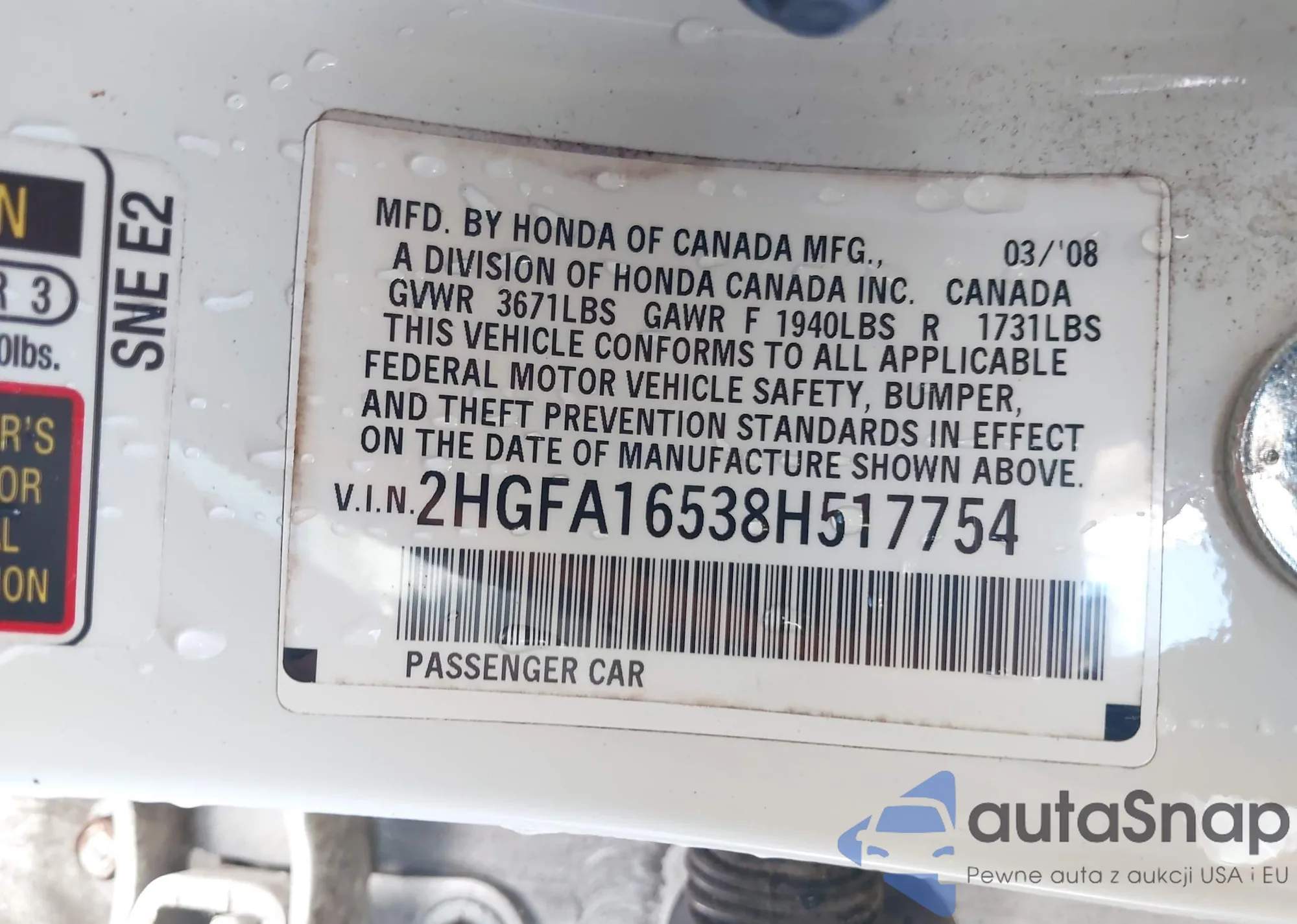 VIN: 2HGFA16538H517754