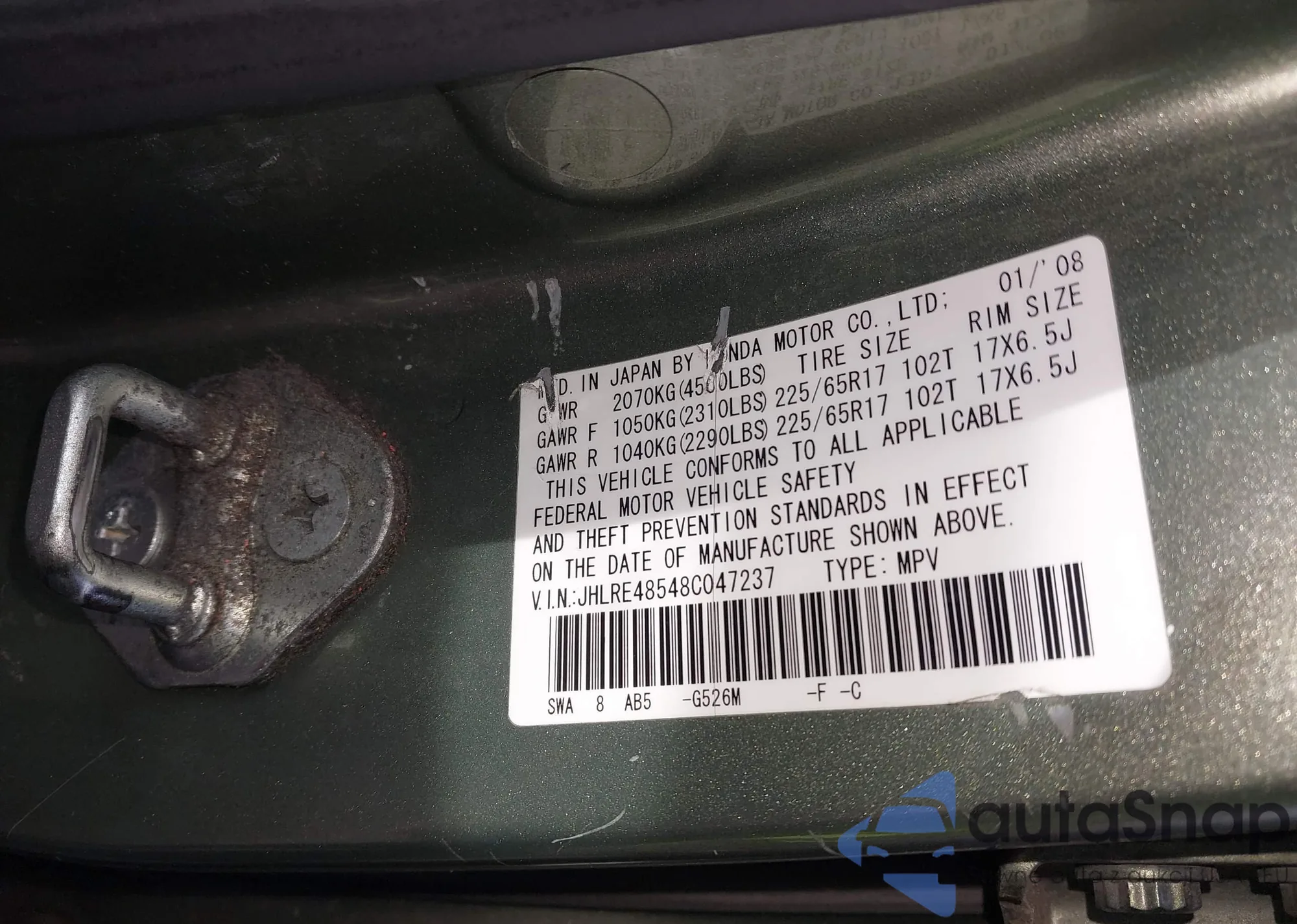 VIN: JHLRE48548C047237
