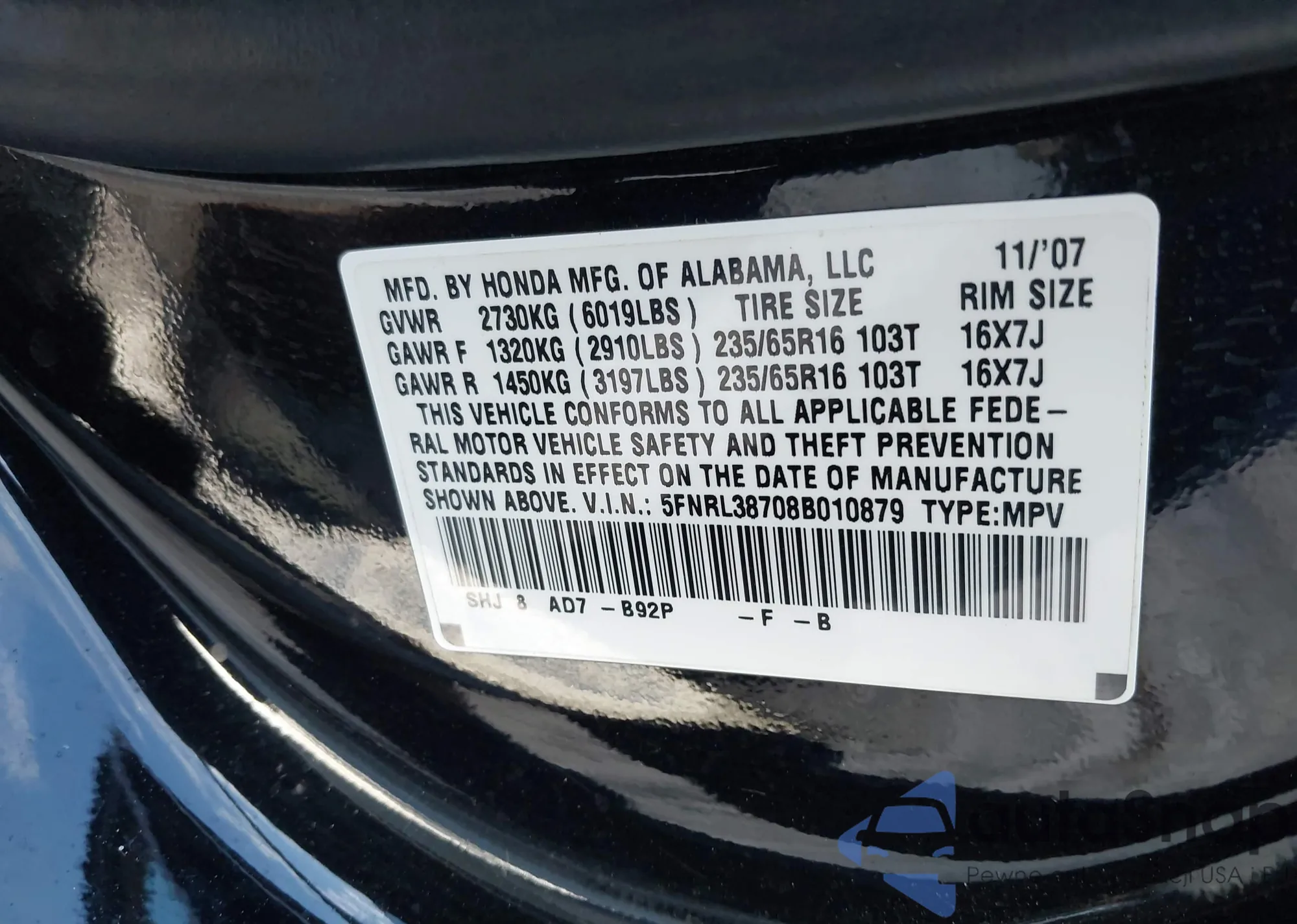 VIN: 5FNRL38708B010879