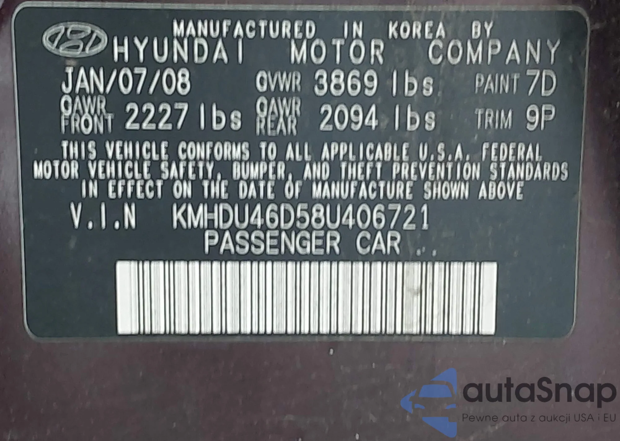 • VIN: KMHDU46D58U406721