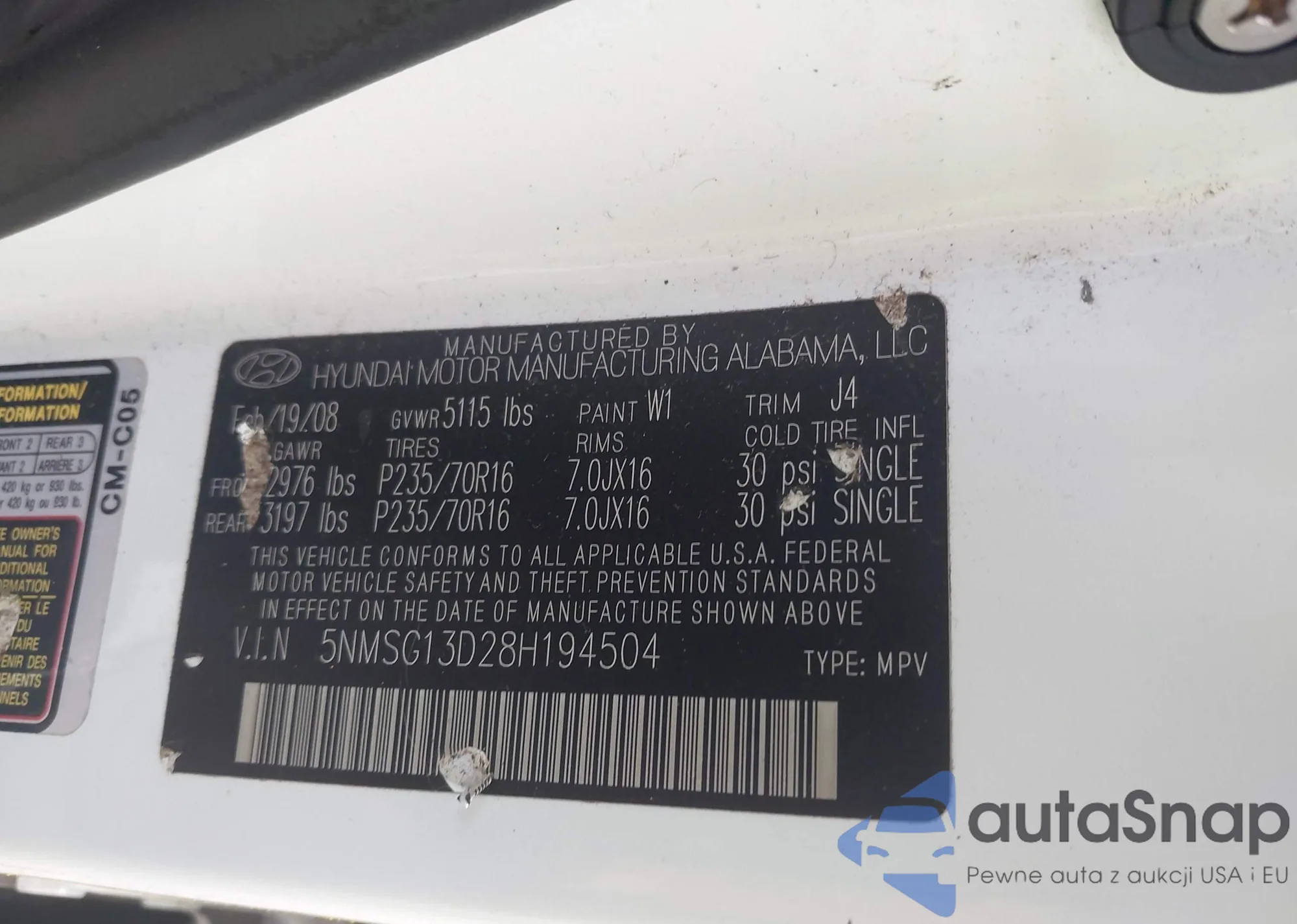 VIN: 5NMSG13D28H194504