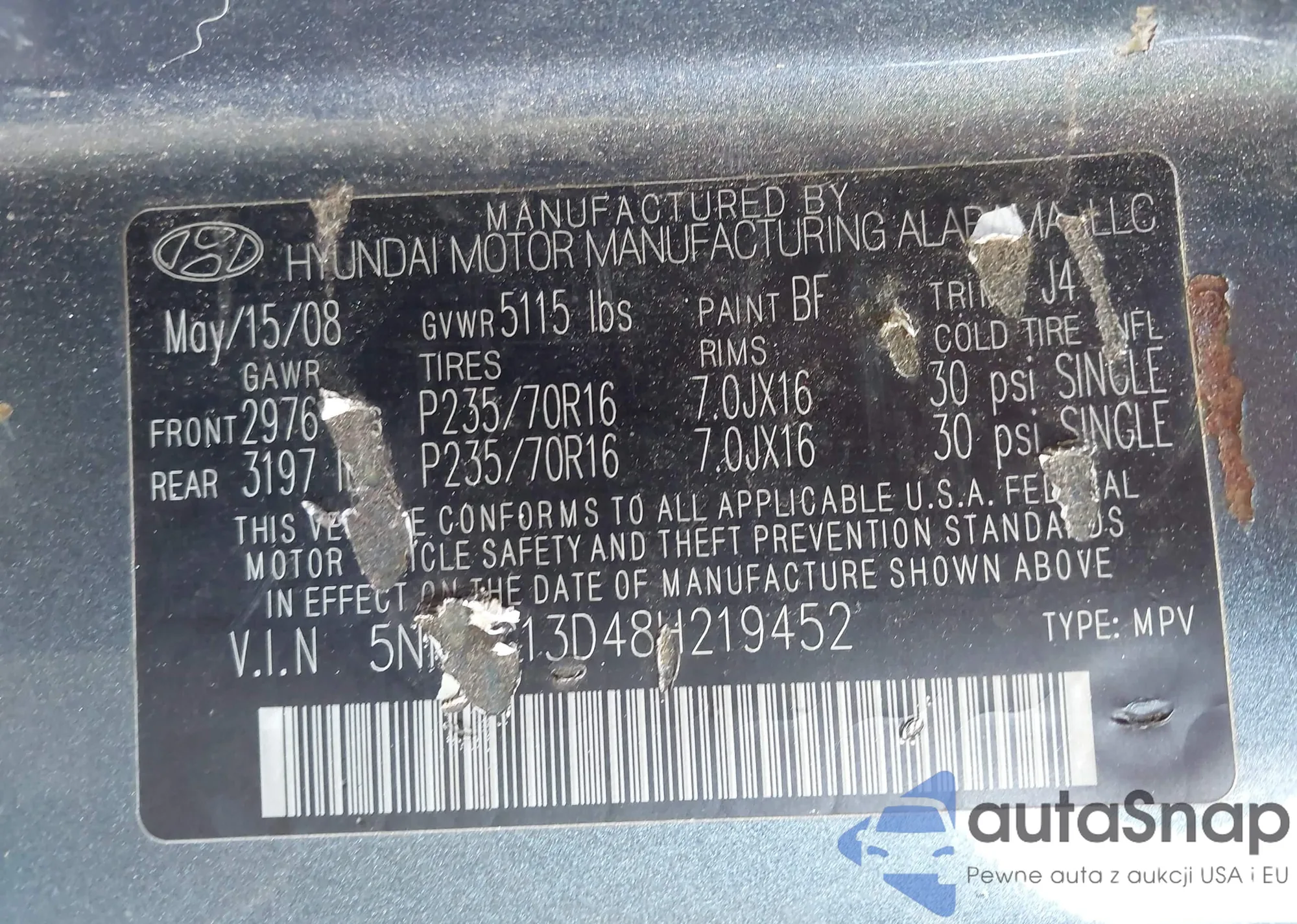 VIN: 5NMSG13D48H219452