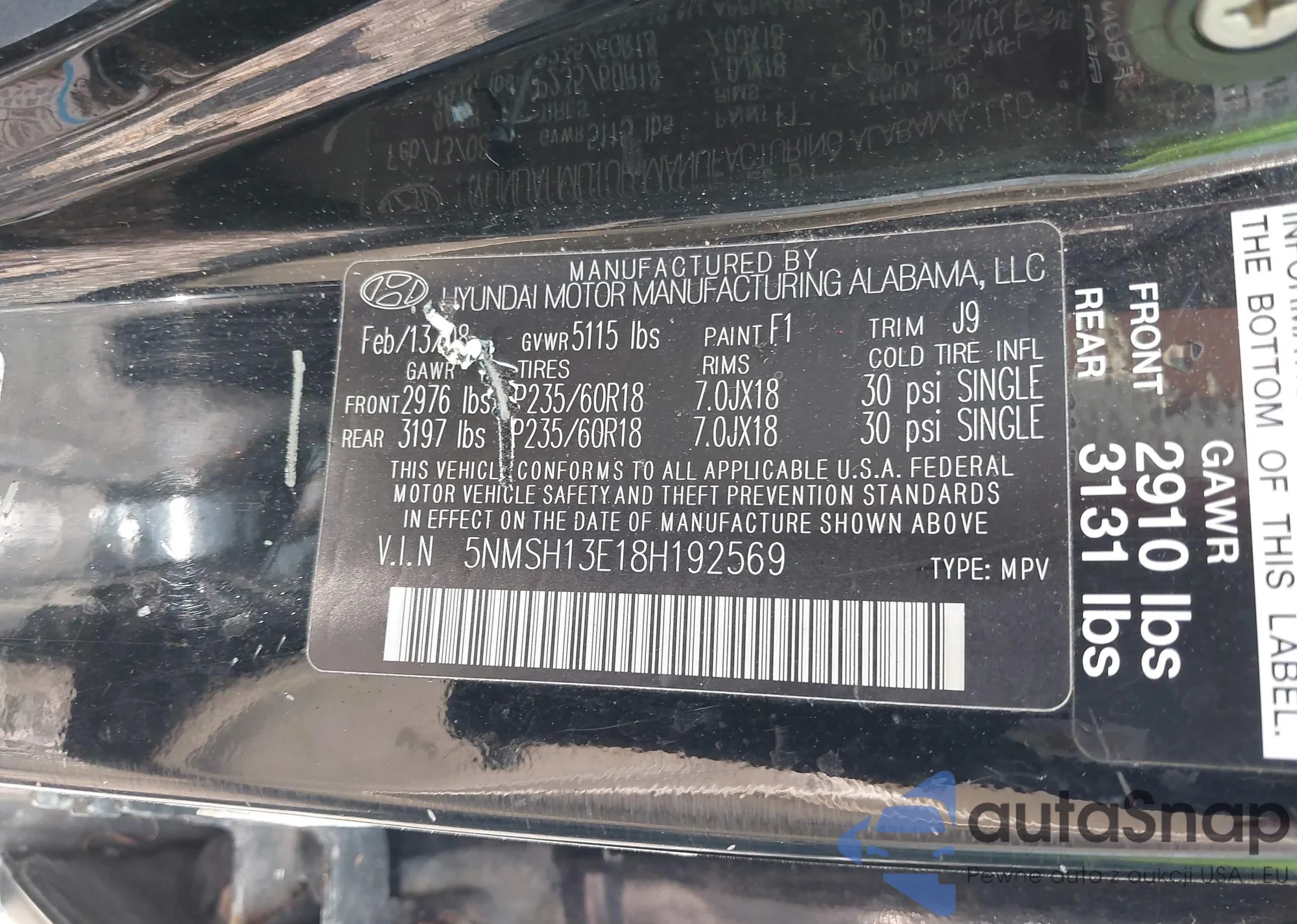 VIN: 5NMSH13E18H192569