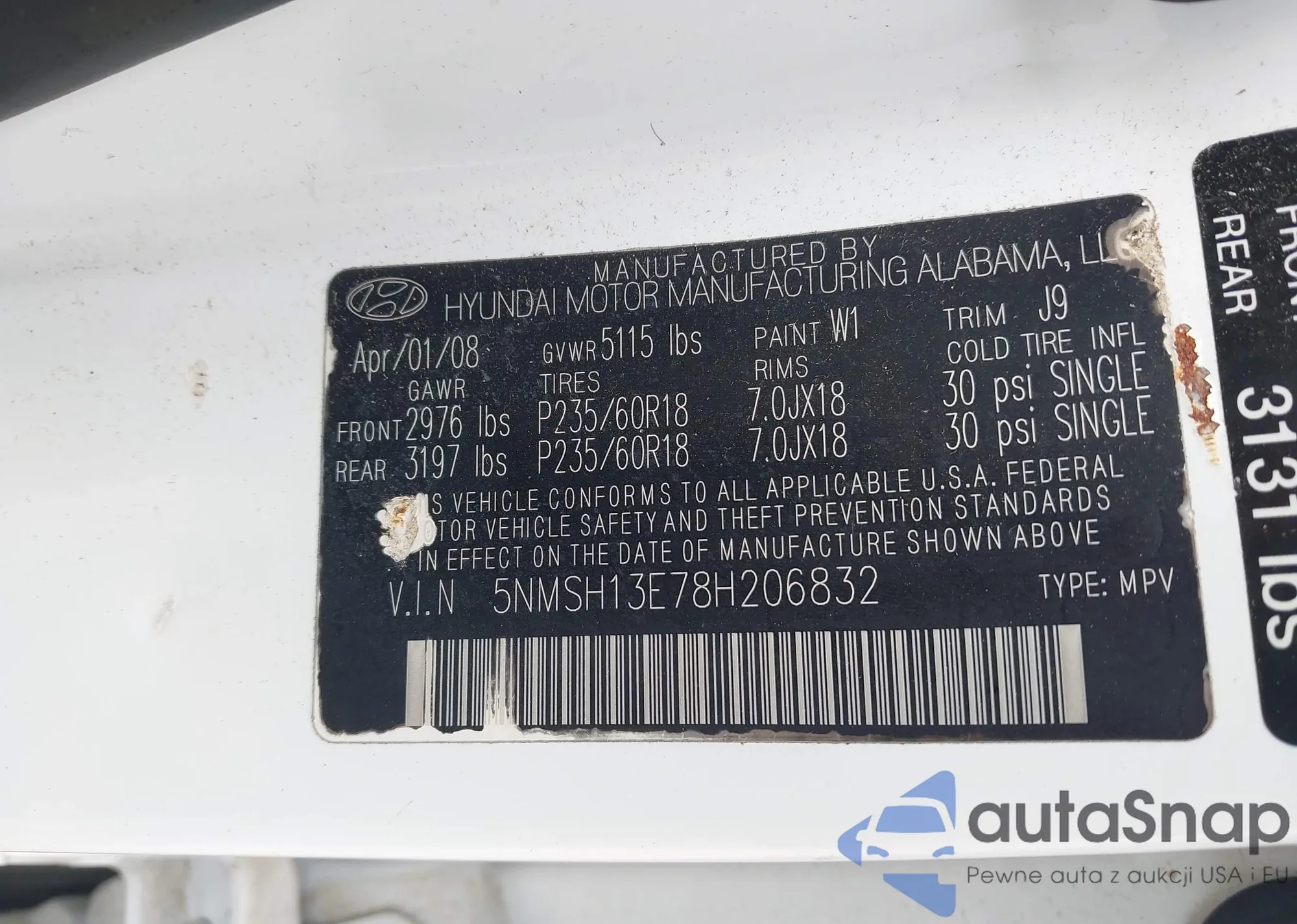 VIN: 5NMSH13E78H206832