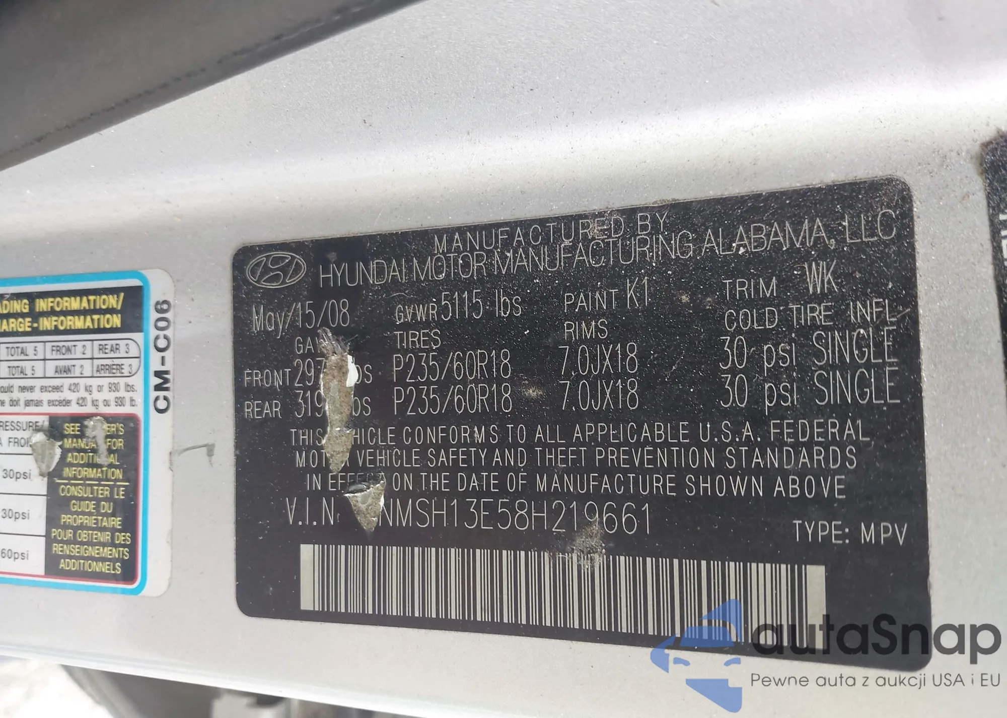 • VIN: 5NMSH13E58H219661