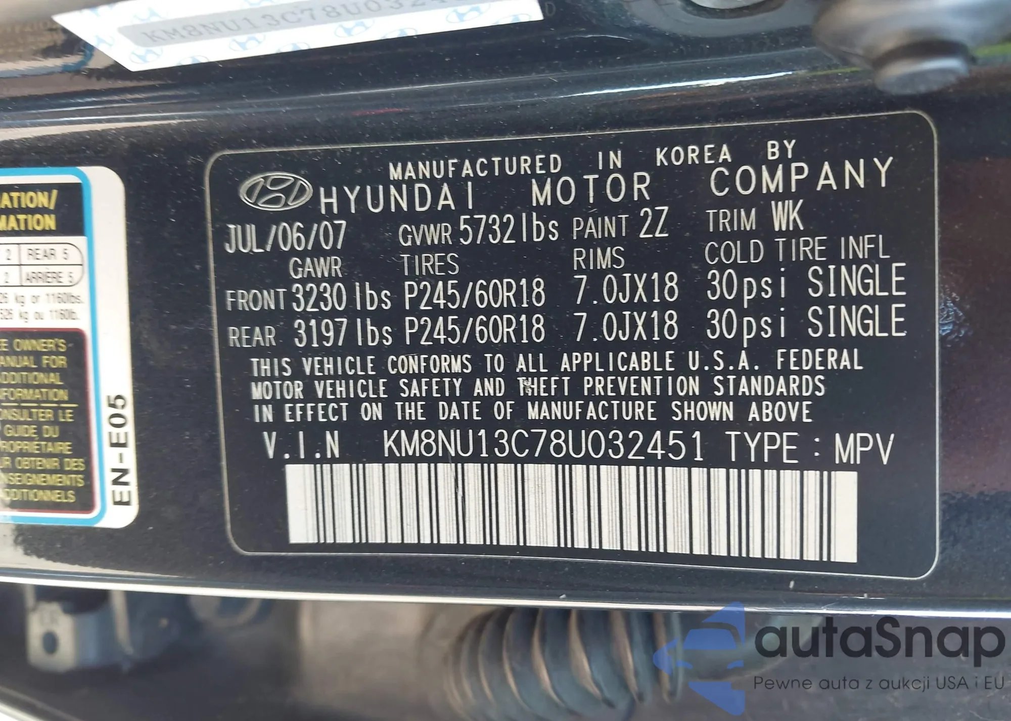 VIN: KM8NU13C78U032451