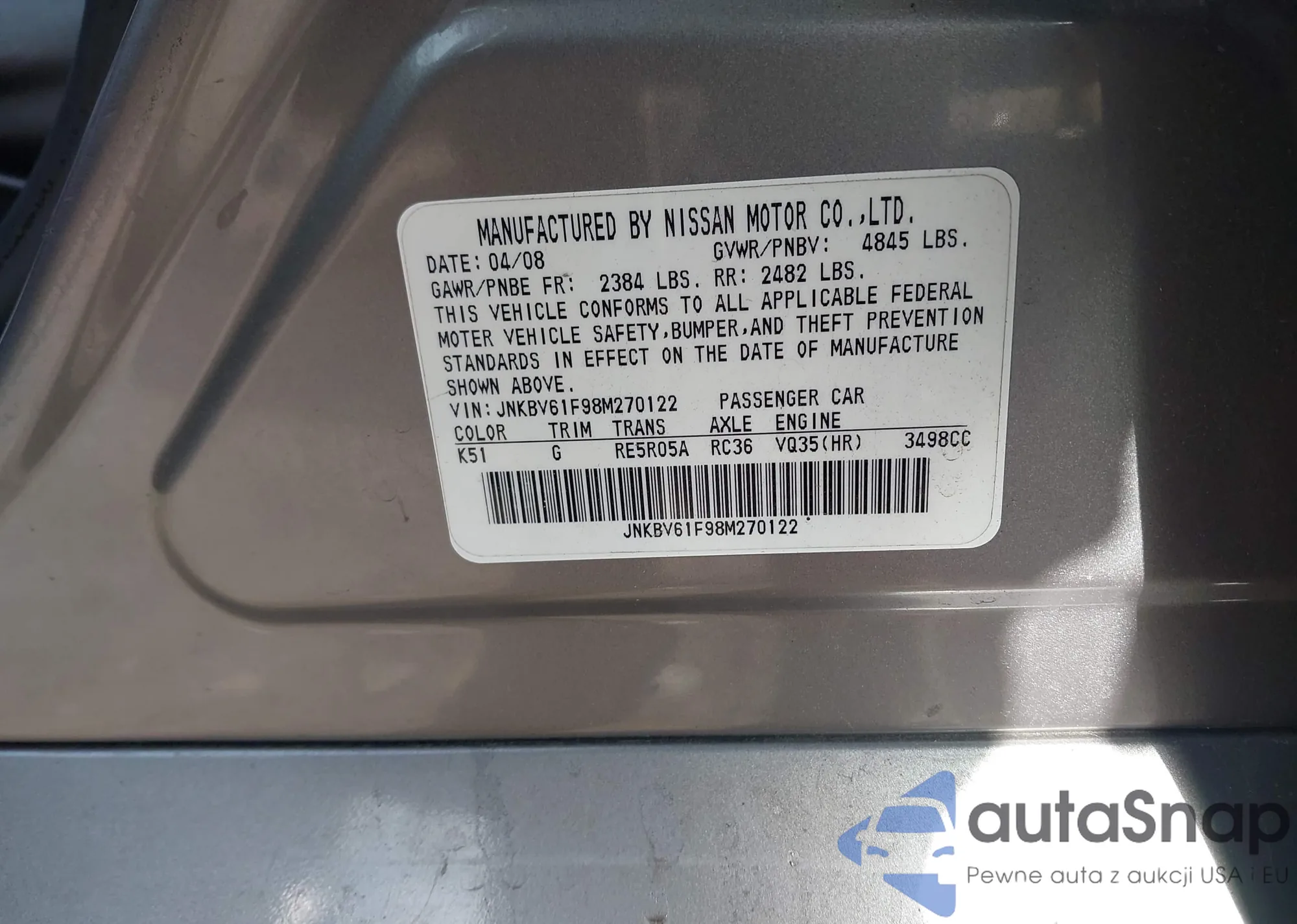 VIN: JNKBV61F98M270122