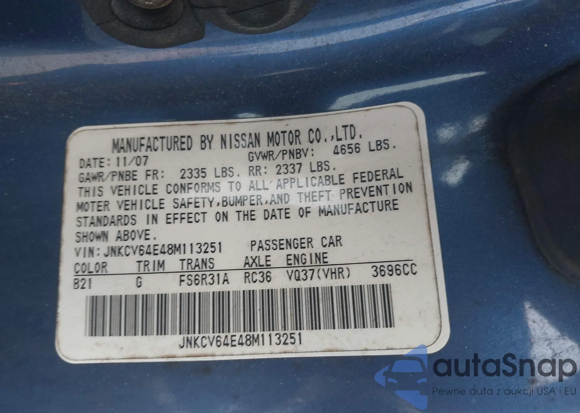 Infiniti G 2008 – История автомобиля (продан на IAAI)