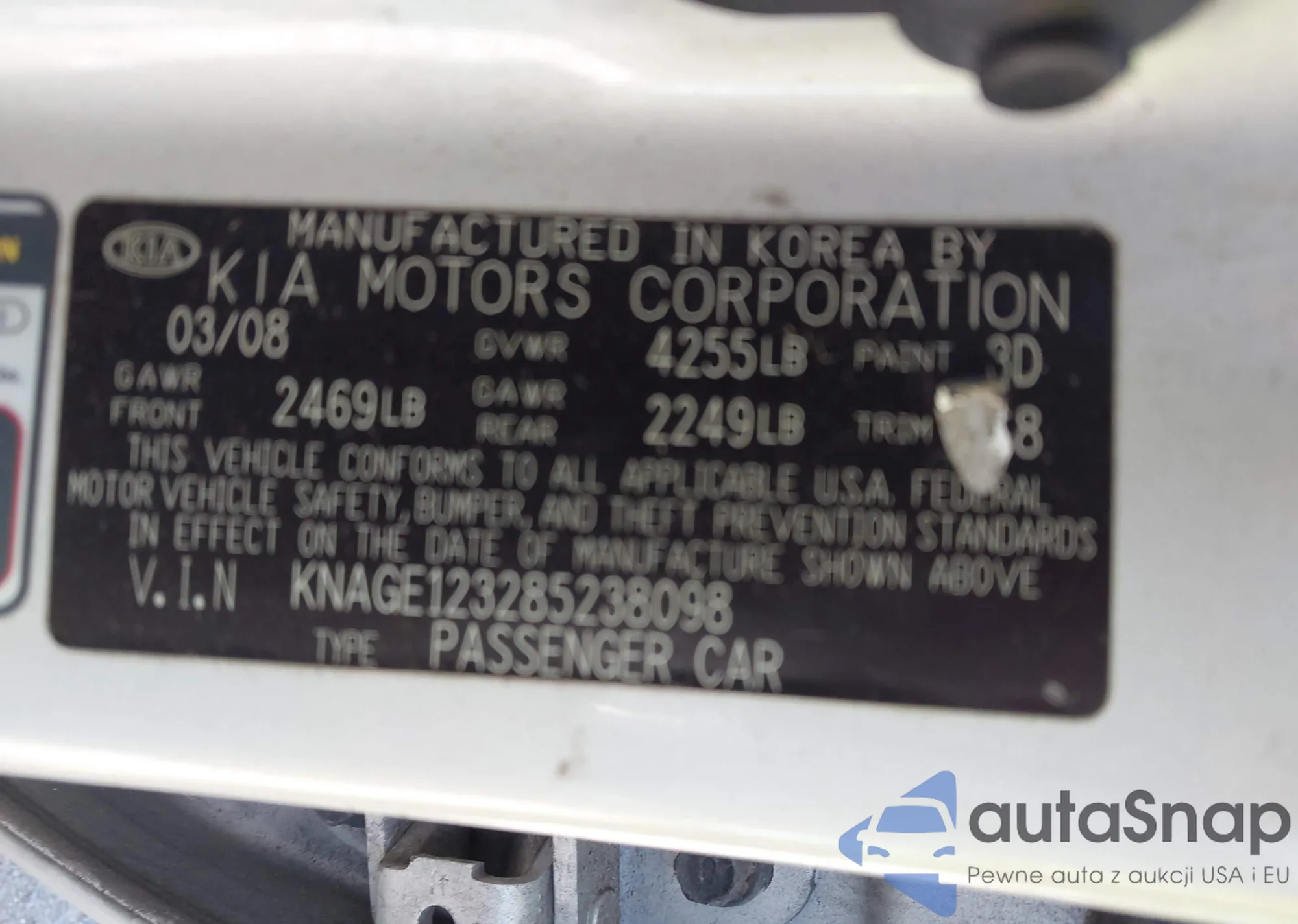 VIN: KNAGE123285238098