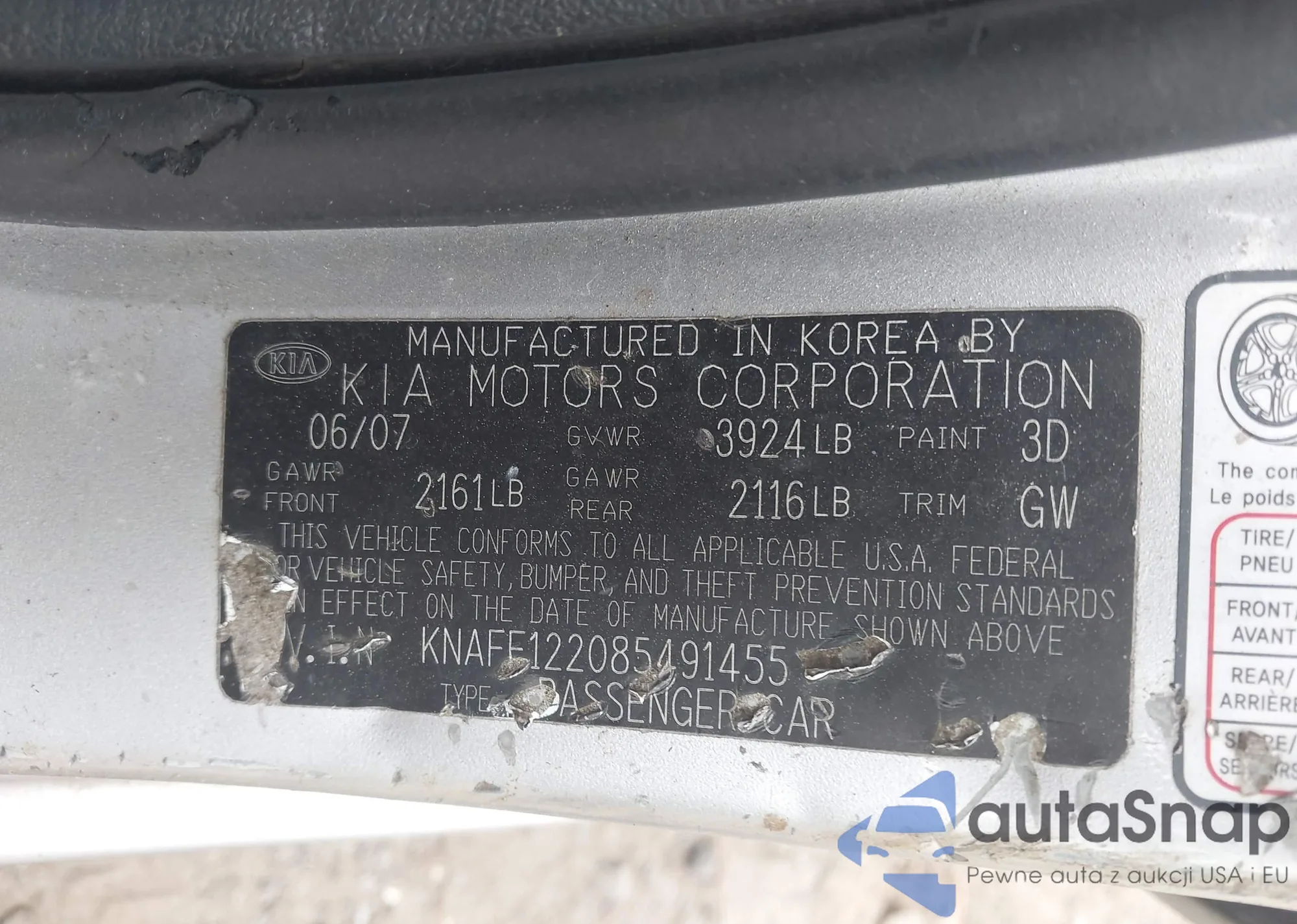 VIN: KNAFE122085491455