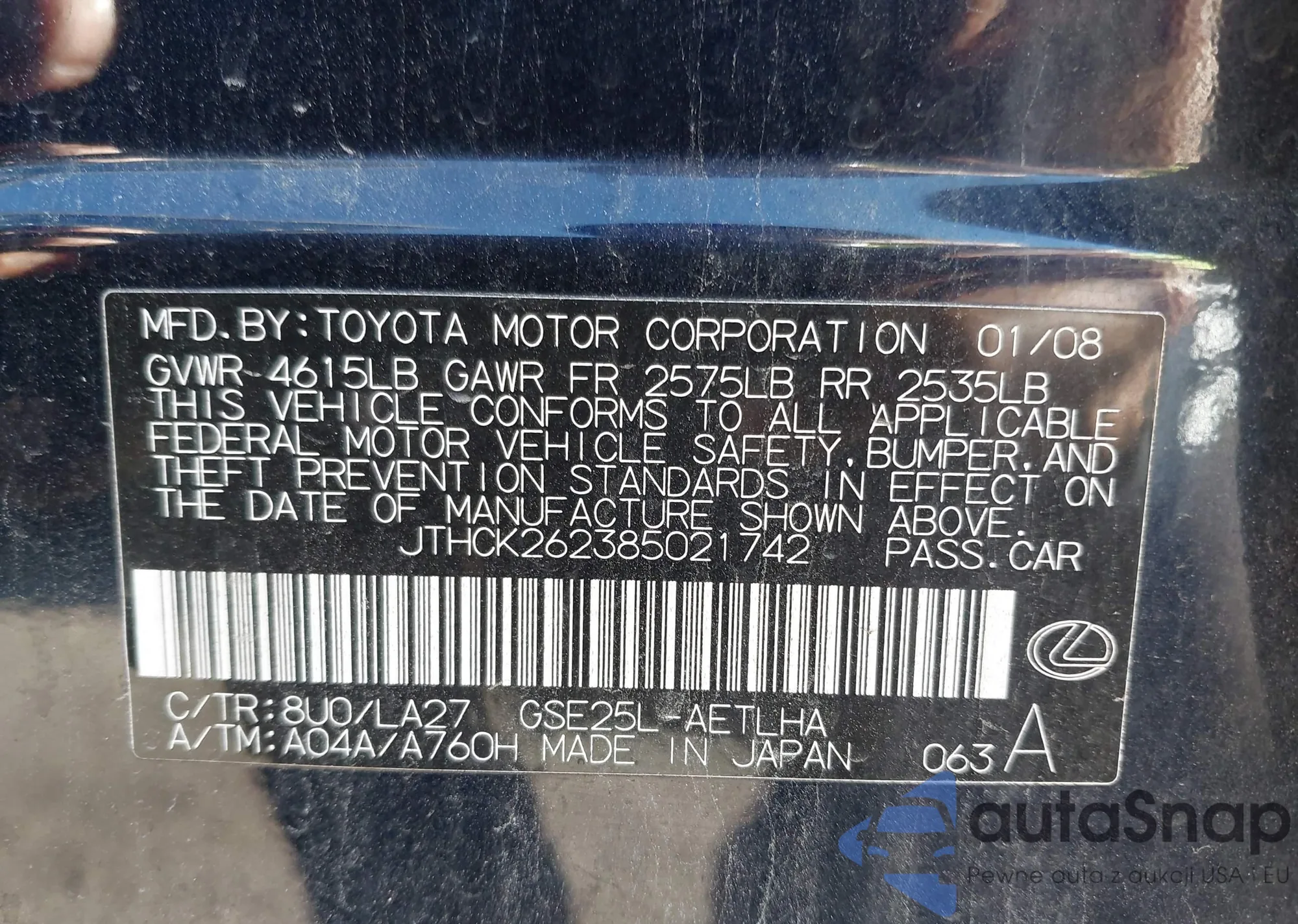 VIN: JTHCK262385021742
