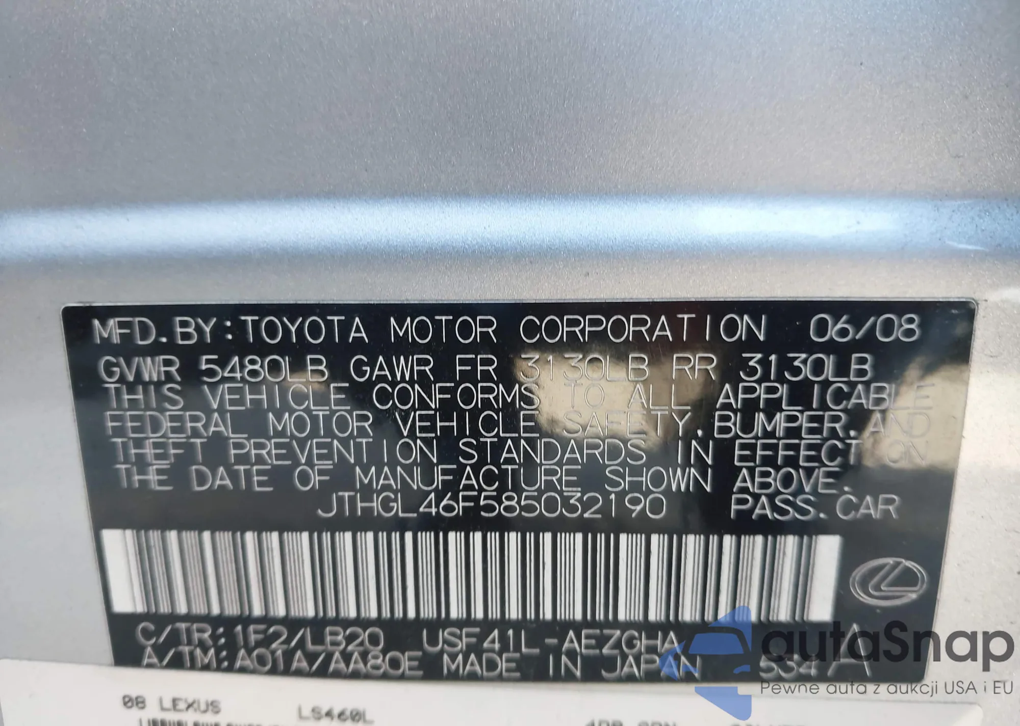 VIN: JTHGL46F585032190