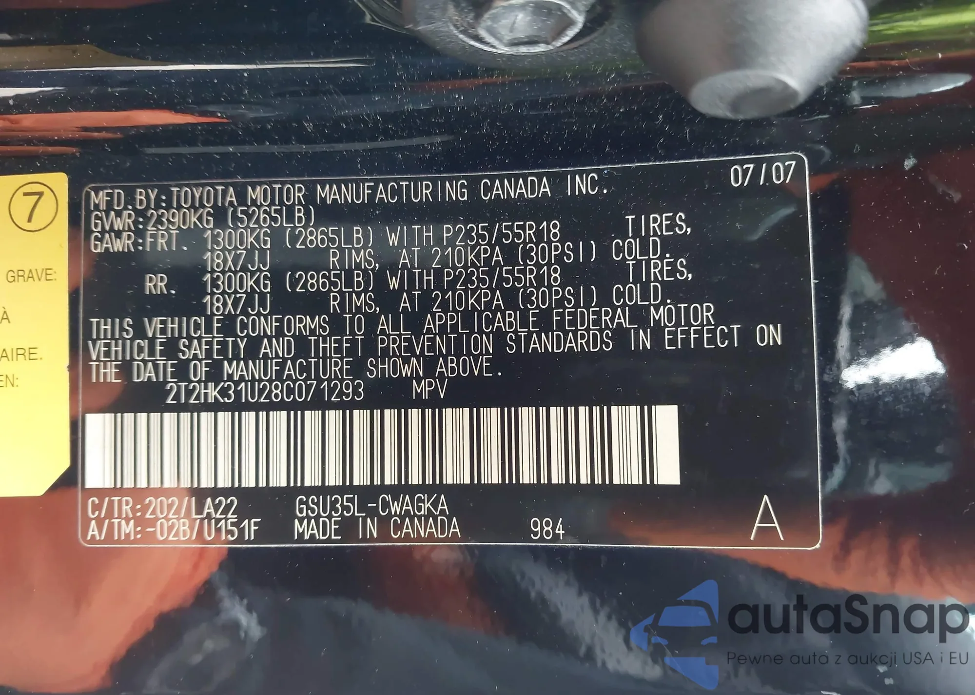 VIN: 2T2HK31U28C071293