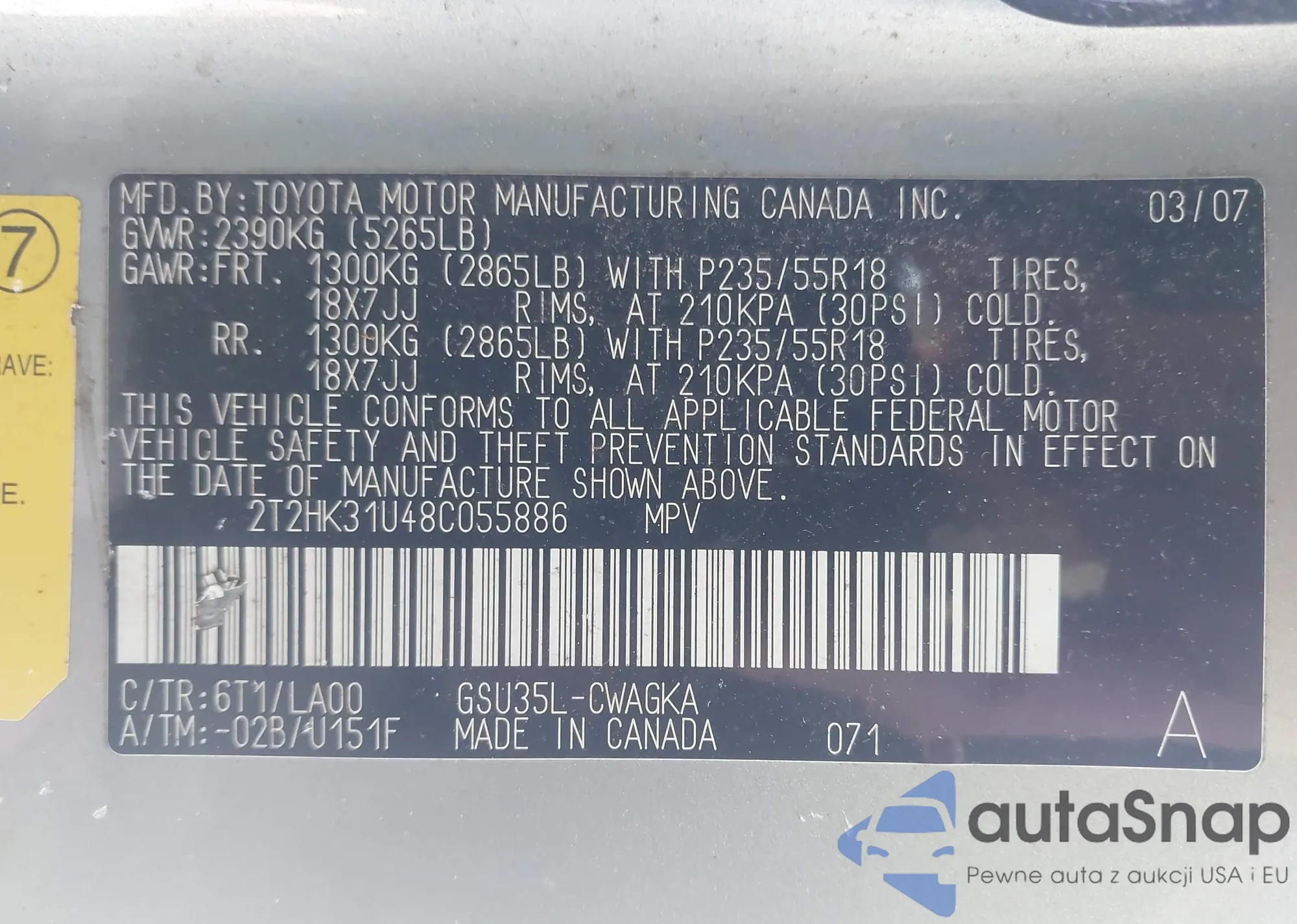 Автомобиль Lexus RX 2008 (VIN 2T2HK31U48C055886) ранее не участвовал в торгах. Документы чистые, пробег соответствует или ниже среднего по рынку. Продаётся страховой компанией — рекомендуем покупку. Доставка в порт займет около 6–8 недель.