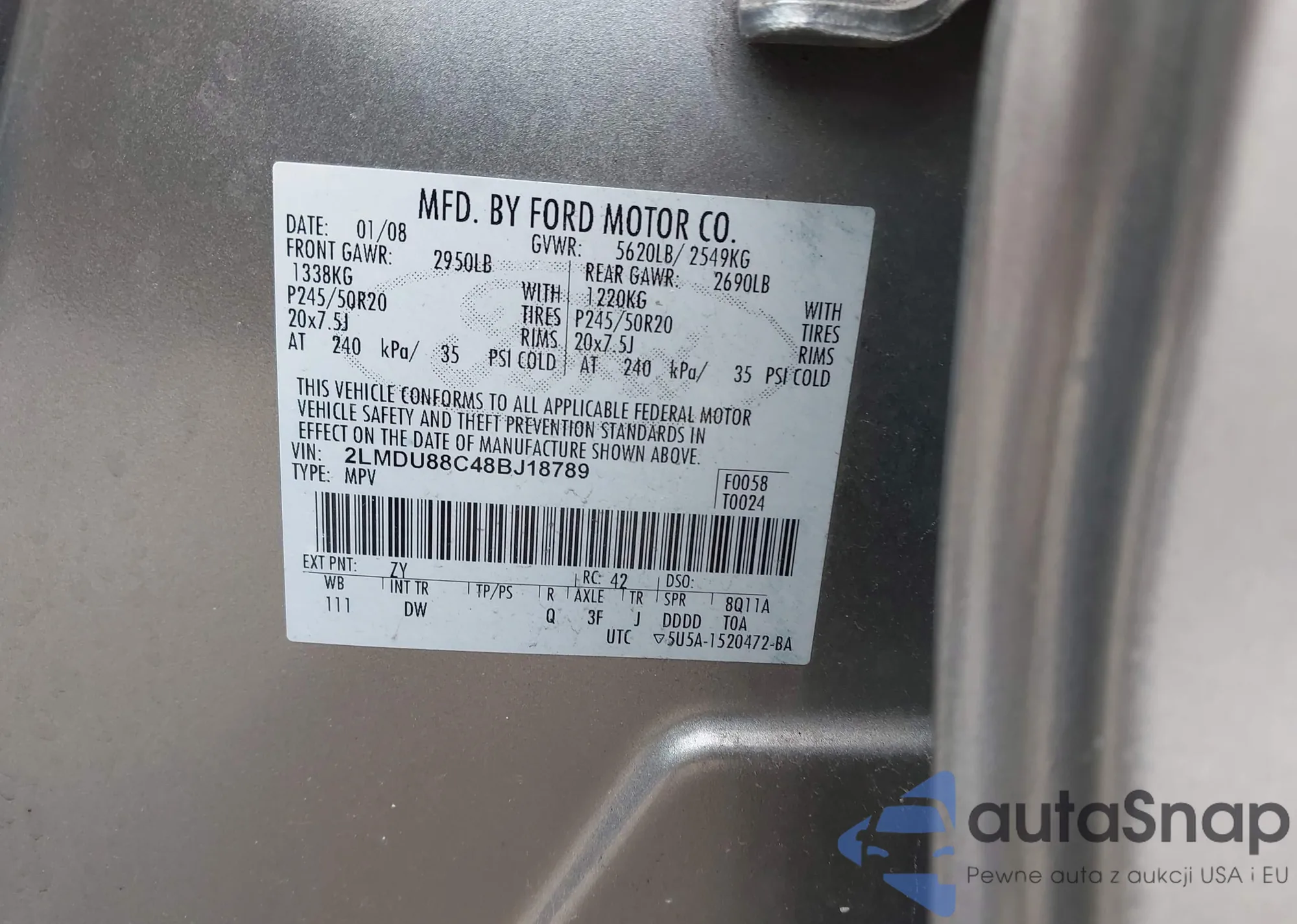 VIN: 2LMDU88C48BJ18789