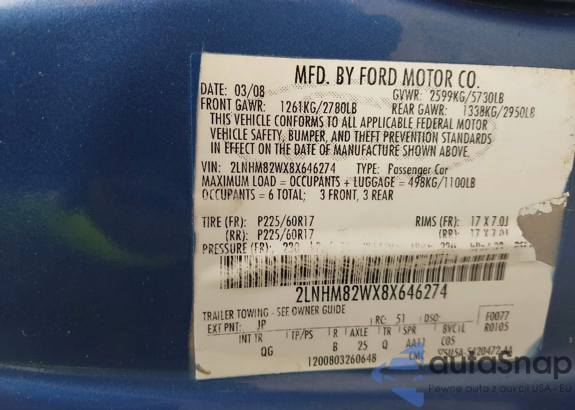 VIN: 2LNHM82WX8X646274