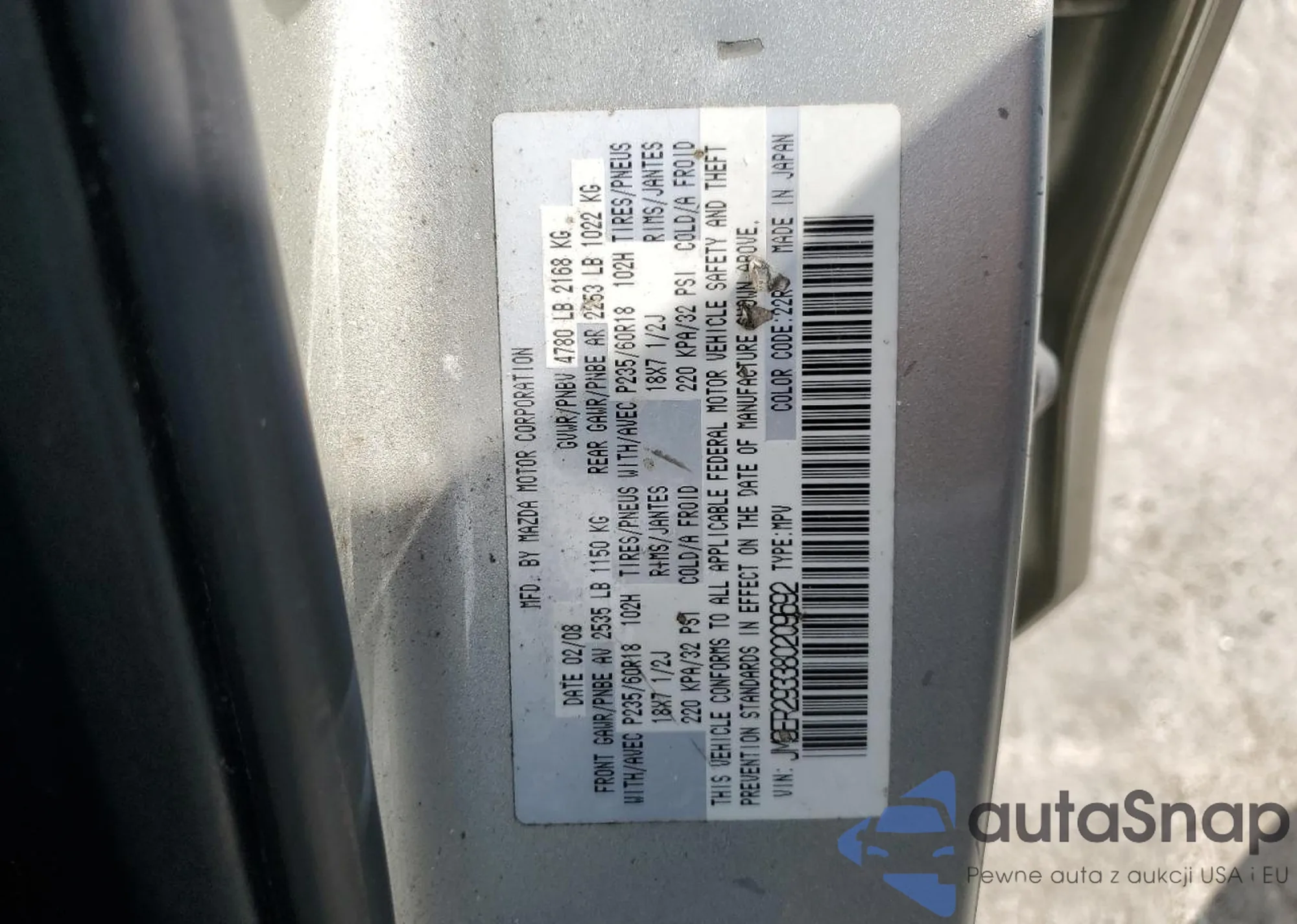 Автомобиль Mazda CX-7 2008 (VIN JM3ER293380209692) продаётся непроверенным продавцом. Рекомендуем проверить отчет Carfax и подтвердить возможность регистрации перед покупкой.