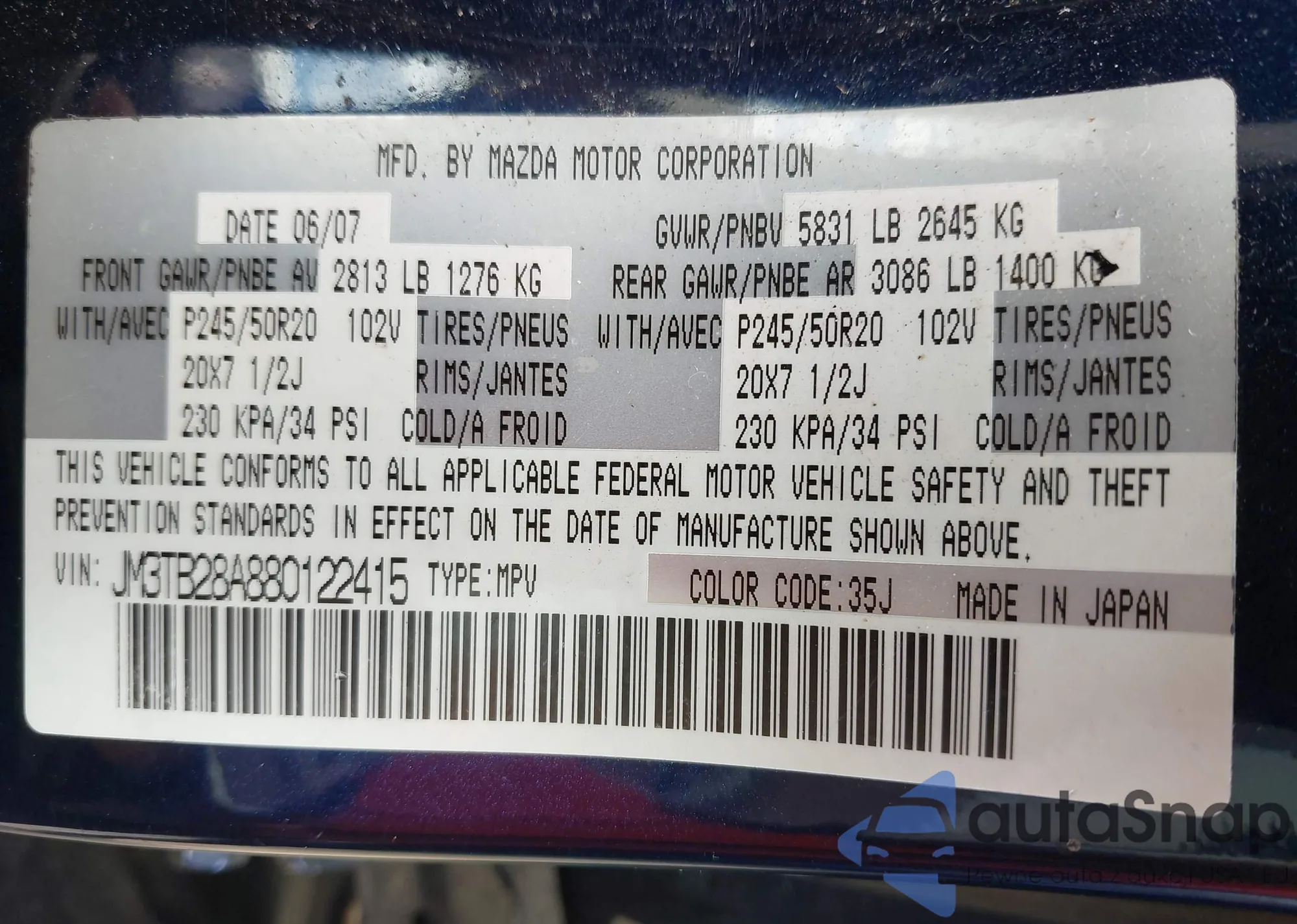 Автомобиль Mazda CX-9 2008 (VIN JM3TB28A880122415) ранее не участвовал в торгах. Документы чистые, пробег соответствует или ниже среднего по рынку. Продаётся страховой компанией — рекомендуем покупку. Доставка в порт займет около 6–8 недель.