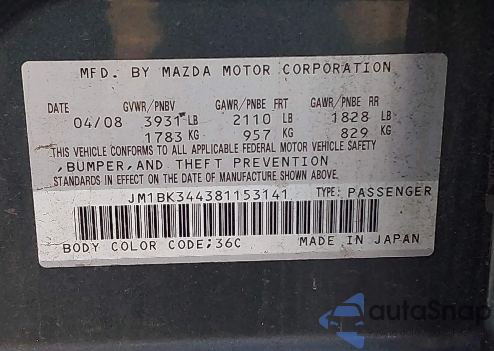 Автомобиль Mazda 3 2008 (VIN JM1BK344381153141) ранее не участвовал в торгах. Документы чистые, пробег соответствует или ниже среднего по рынку. Продаётся страховой компанией — рекомендуем покупку. Доставка в порт займет около 6–8 недель.