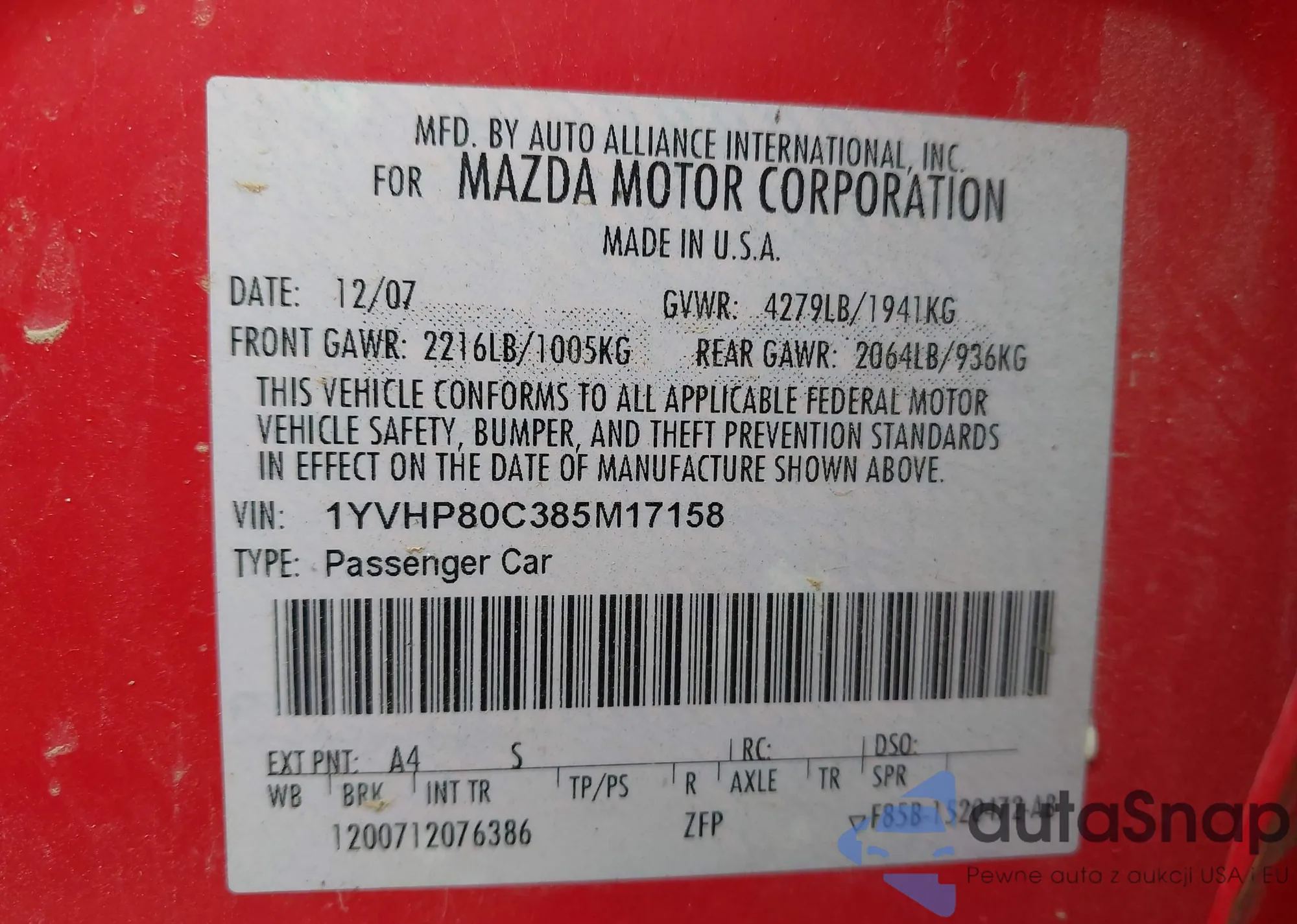 VIN: 1YVHP80C385M17158